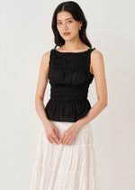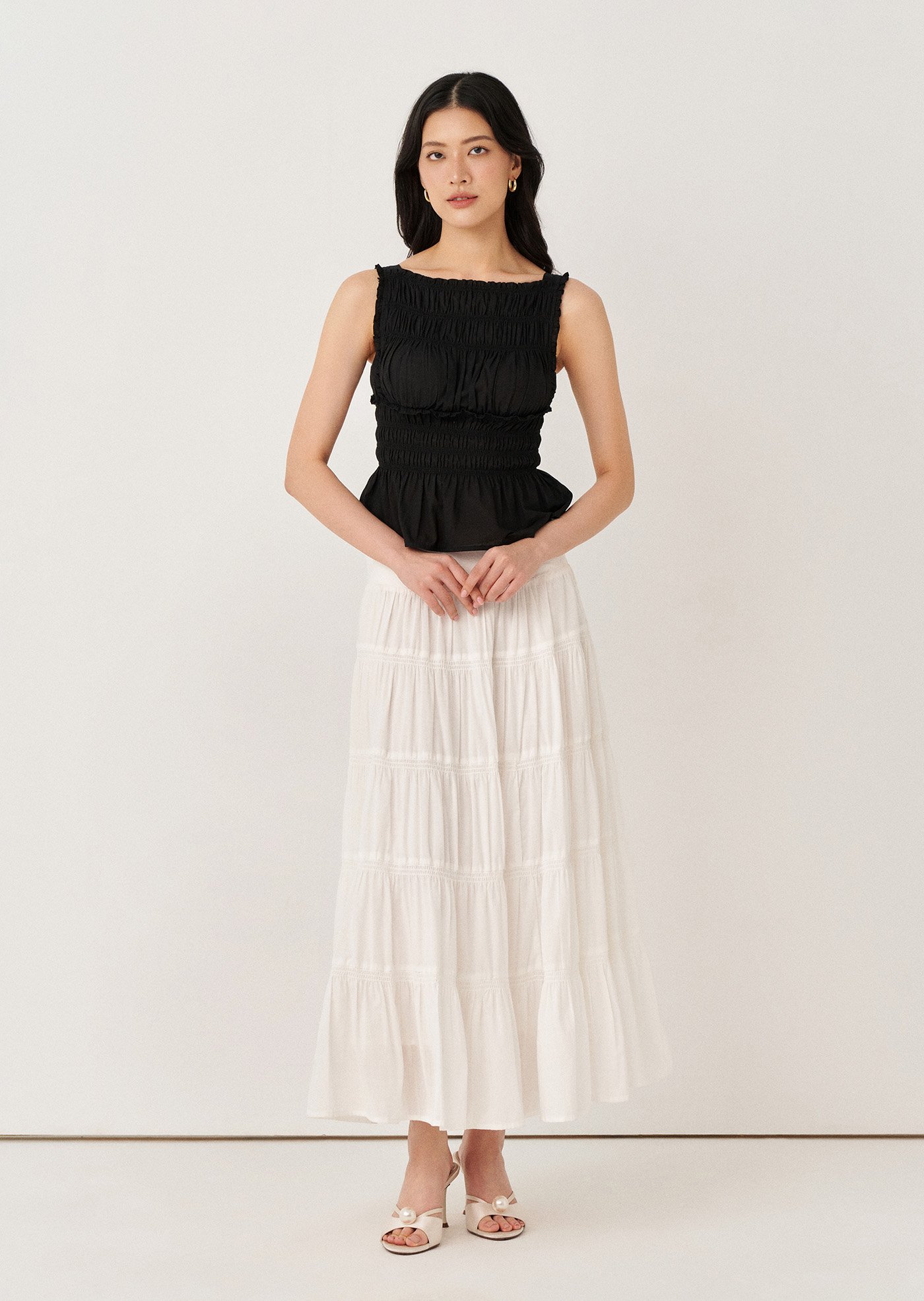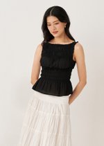The Mira Top features delicate smocking and soft ruffled edges that create a flattering, feminine silhouette. Light and easy to wear, it’s designed to pair effortlessly with your favorite skirts or denim.