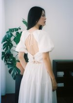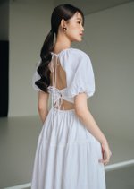 Embrace the allure of an open-back dress with lace and self-tie ribbons in the form of Moda. This dress combines the cherished elements of comfort, style, and intricate details that we all adore.