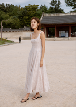 The Nadia is a flattering minimalist midaxi dress that you will not only need but love. It features a square neckline and fitted bodice, with an a-line styled skirt.