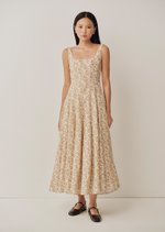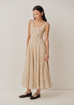 The Nadia is a flattering minimalist midaxi dress that you will not only need but love. It features a square neckline and fitted bodice, with an a-line styled skirt. Made with our exclusively in-house designed floral print fabric.