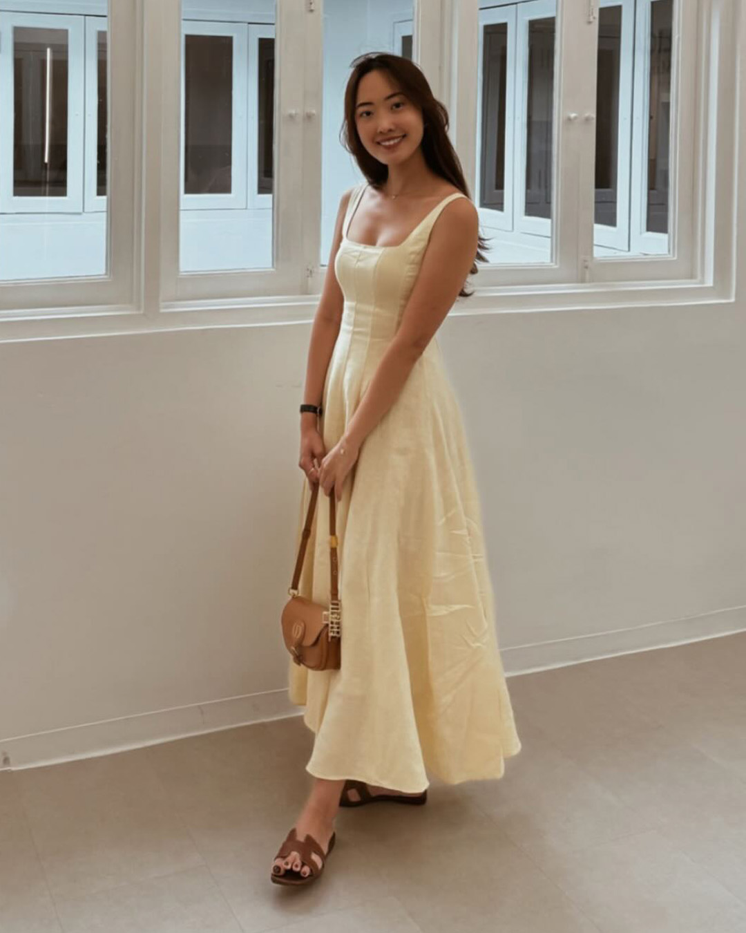 The Nadia is a flattering minimalist midaxi dress that you will not only need but love. It features a square neckline and fitted bodice, with an a-line styled skirt. Made with our exclusively in-house designed floral print fabric.