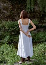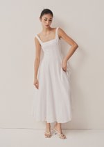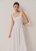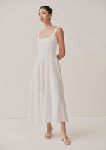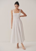 The Nadia is a flattering minimalist midaxi dress that you will not only need but love. It features a square neckline and fitted bodice, with an a-line styled skirt.