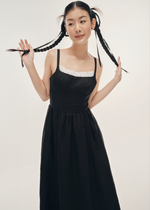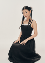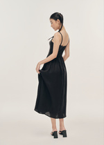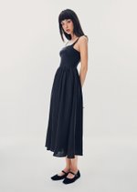 The Nikita midi is fully-lined dress that comes with a ruffled, scoop neckline and adjustable spaghetti straps.