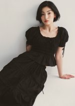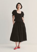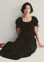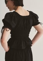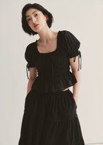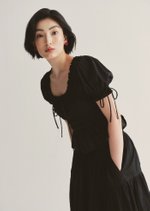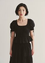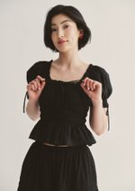 The Nova Top blends vintage romance with modern charm, featuring puffy sleeves, a smocked bodice, and a flattering scoop neckline. An adjustable ribbon tie adds a delicate touch, making it effortlessly stylish for any occasion.