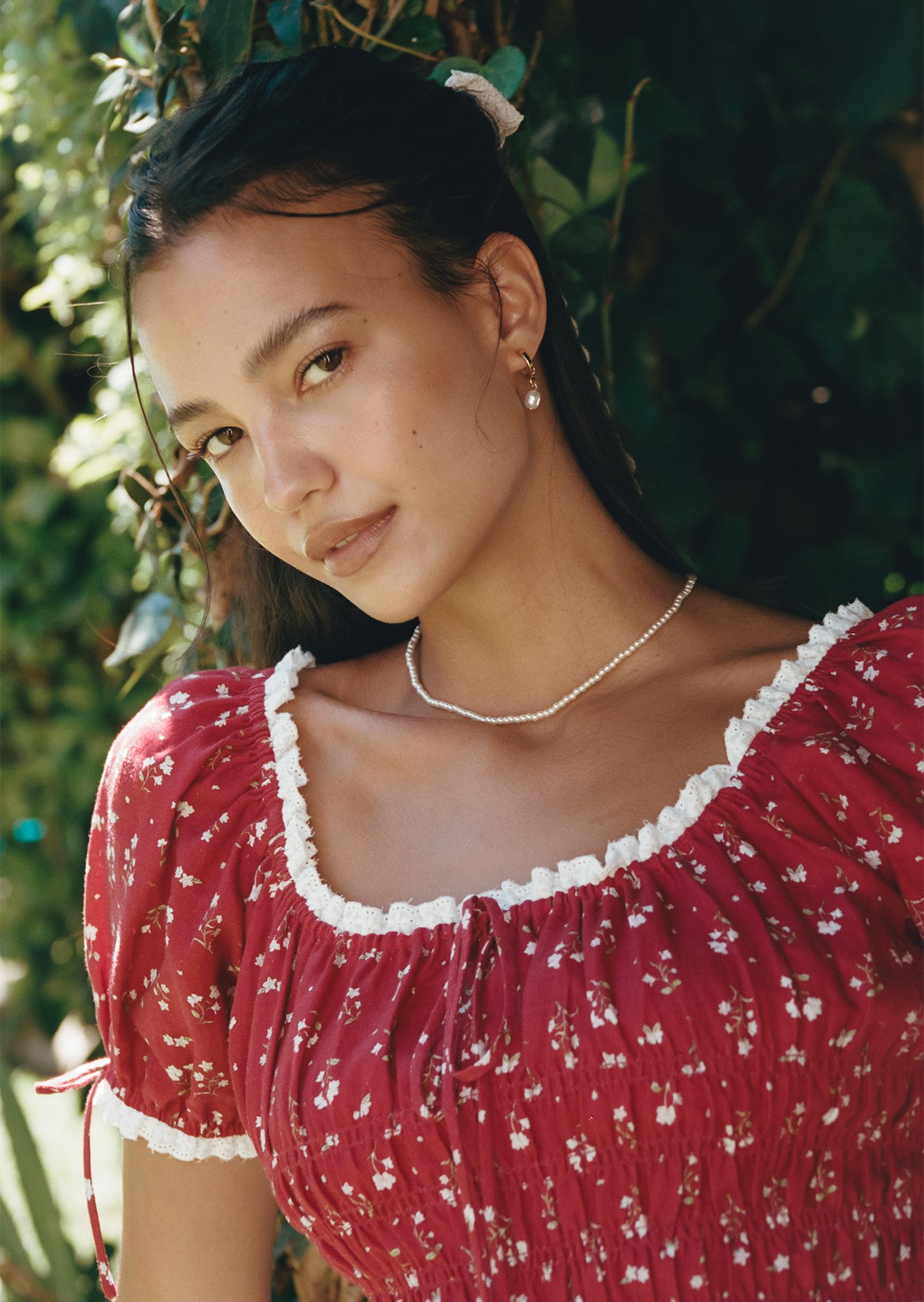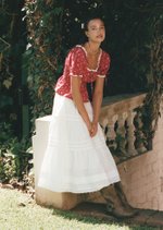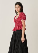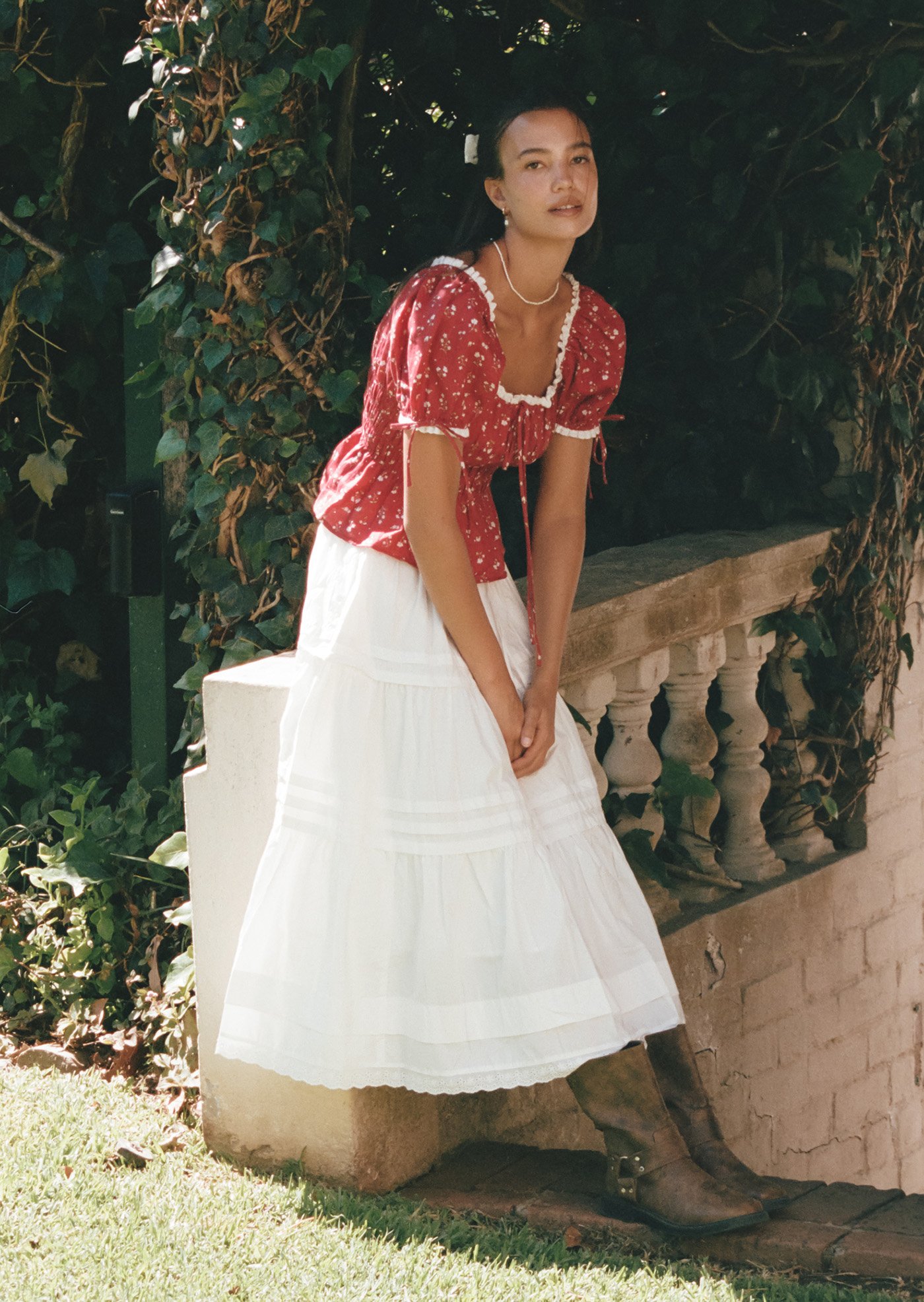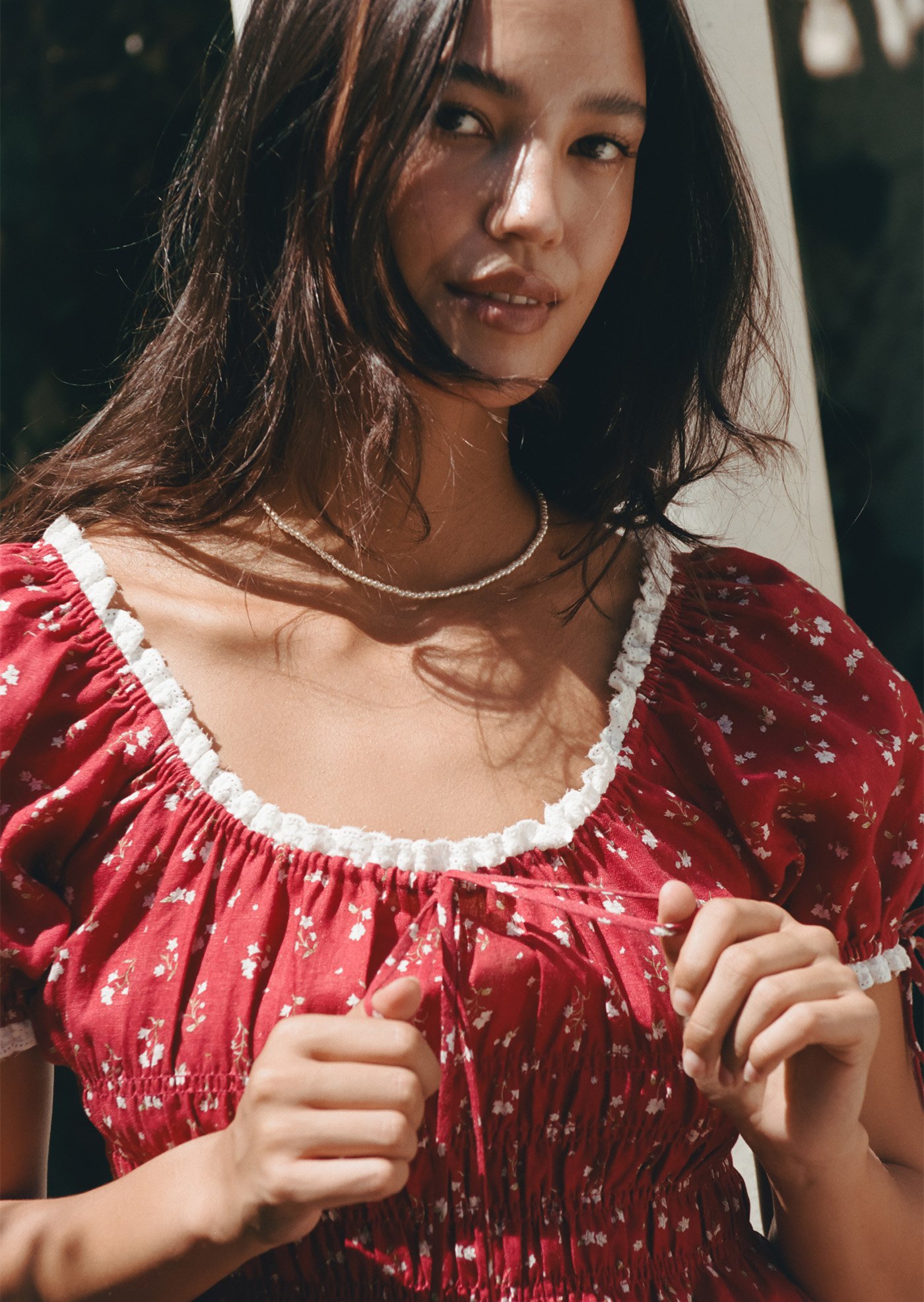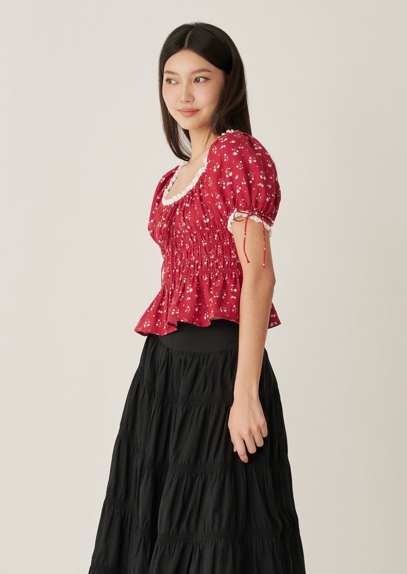 The Nova Top blends vintage romance with modern charm, featuring puffy sleeves, a smocked bodice, and a flattering scoop neckline. An adjustable ribbon tie adds a delicate touch, making it effortlessly stylish for any occasion.