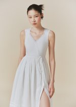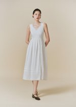 Elevate your wardrobe with our Opal Midi Dress, designed with a flattering V neckline and delicate lace trimming. This fully lined dress, complete with pockets and a versatile midi length, offers both elegance and practicality for any occasion.