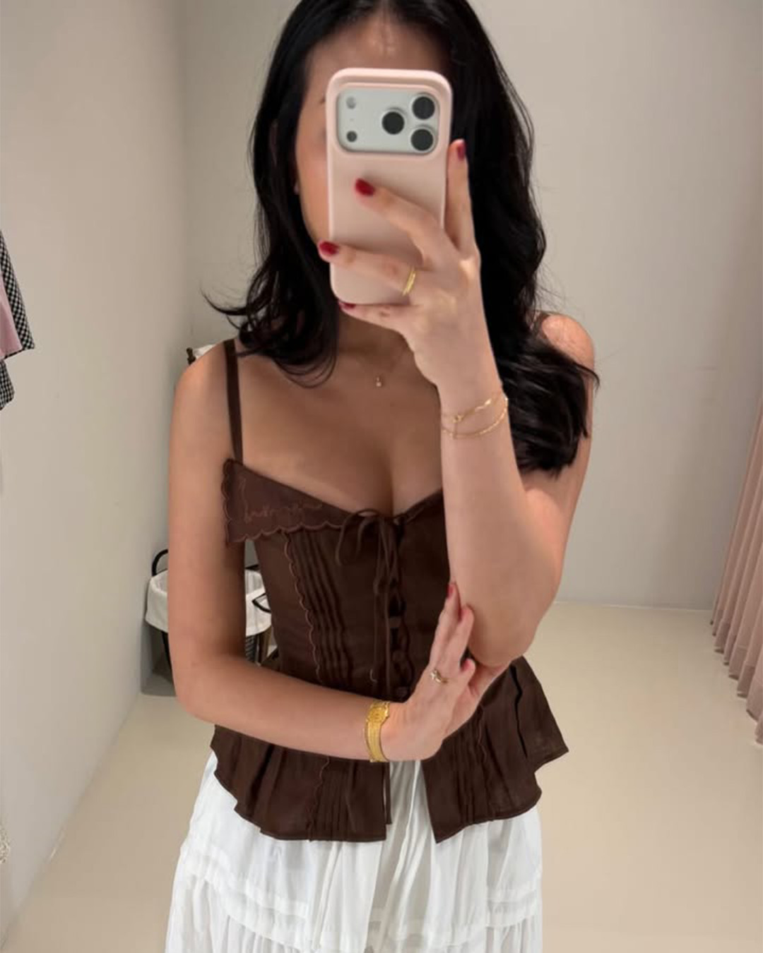 -Sweetheart neckline with soft scalloped edge