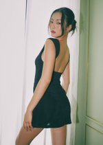 Unveil a touch of allure in the Paris Mini Jumper featuring a stunning bare back, with sexy above-the-knee length and double lining for seamless comfort.