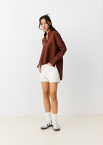A timeless wardrobe staple. The Pepper is an oversized collar button down shirt that you can choose to dress down for casual days or dress up for formal events.