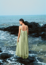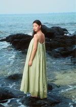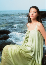 The Kyo is a maxi swing dress with pleated detailing from the top, gracefully cascading down to create a flowy and ethereal silhouette. An effortless piece to throw on that will make you look good and feel good.