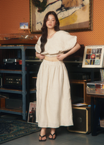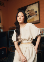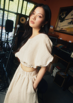 The Megan and Marie set is definitely the ensemble to own and love. A balloon sleeved crop top accompanied with a midi length skirt with slit openings at the side. This set features elasticated sleeve cuffs and waistbands, providing you comfort and breathability, all at once. Exclusively designed in-house.