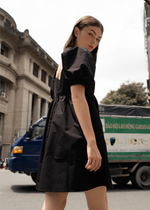 The Loulou Mini Dress comes with puffy sleeves and baby-doll shape.