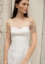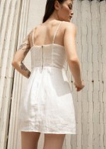 The Pistachio Mini Dress comes with a slim-fitting bodice and adjustable shoulder straps.