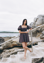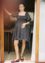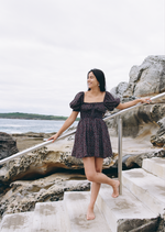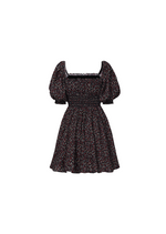 The Sunday mini dress is surely a crowd's favorite, showcasing charming puffy sleeves and a beautifully ruched bodice.