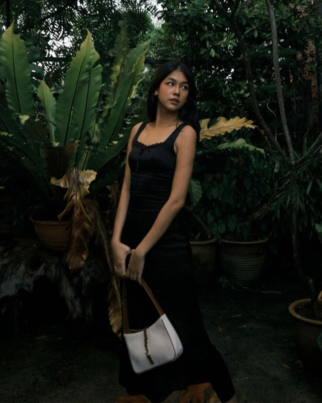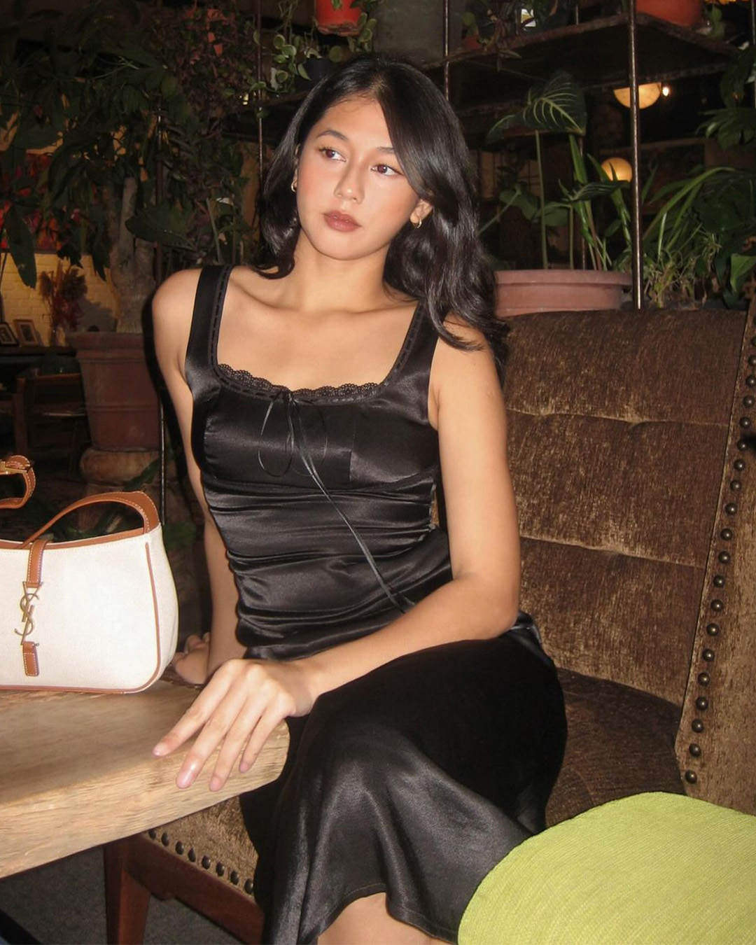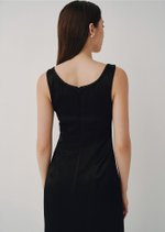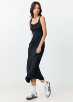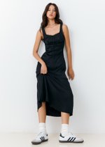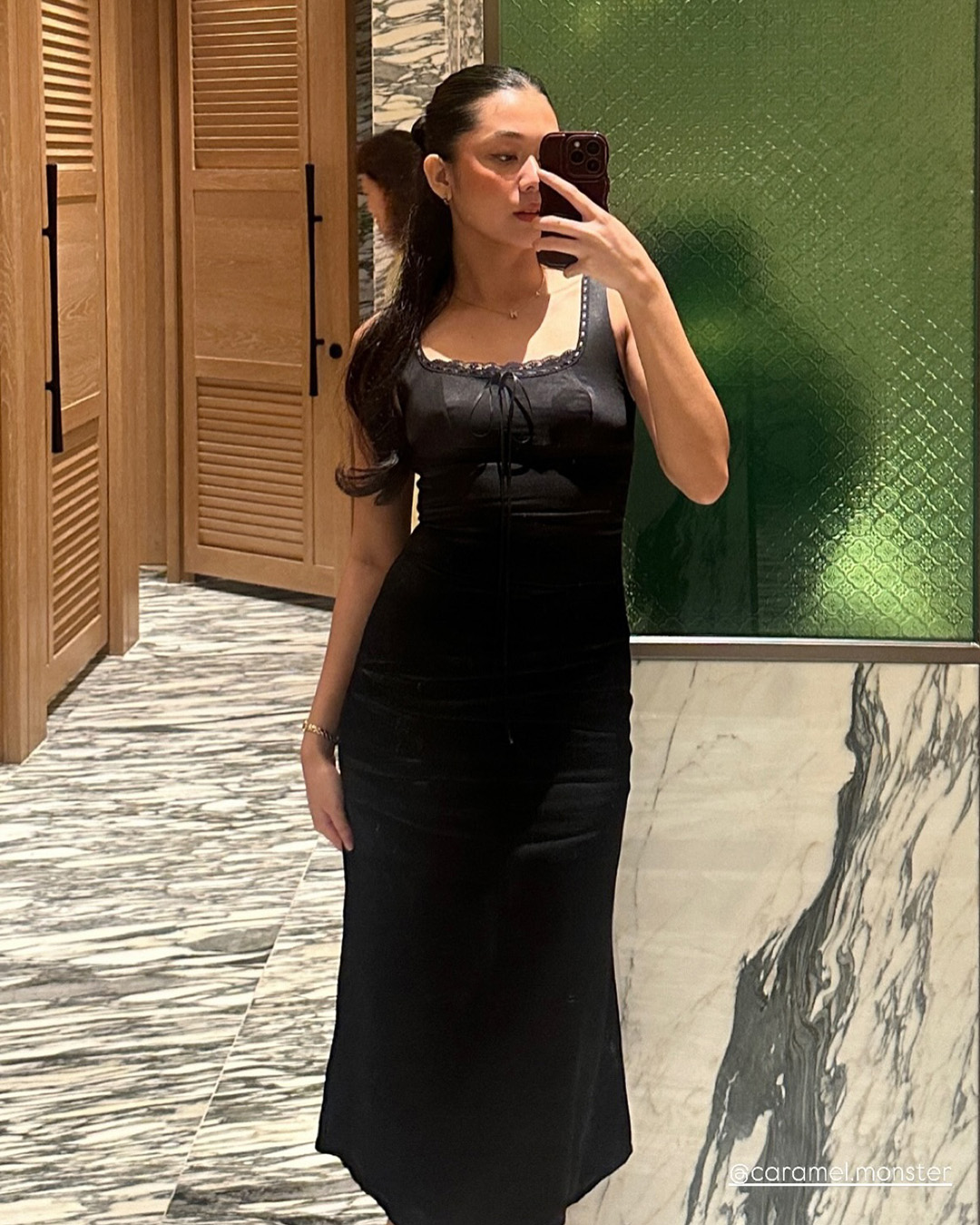 The Jullie midi dress stands out from your typical little black dress. It boasts lace trimmings adorning the neckline and a self-tied ribbon detail, complemented by an A-line skirt panel.
