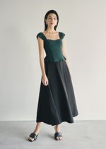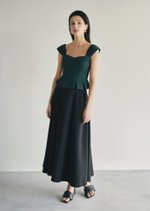 The Currie Top is a blend of retro allure with contemporary style, featuring gathered strap detailing, a sweetheart neckline, and a hem adorned with chic slits.