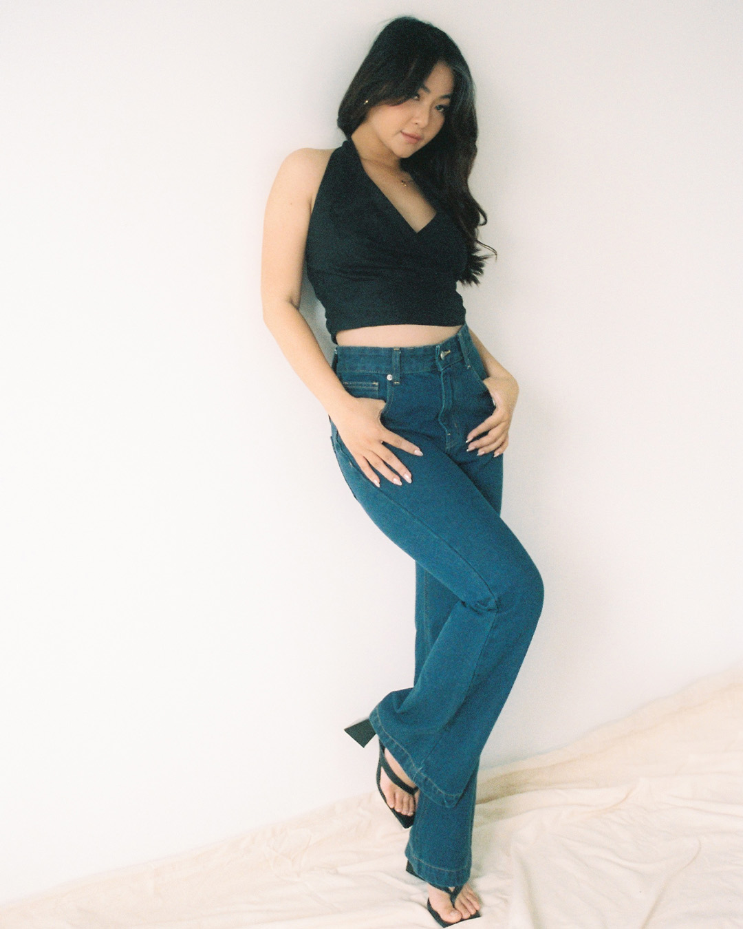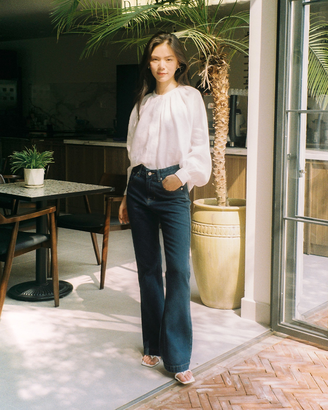 Elevate your denim collection with the Mikayla Flare Jeans, designed to flatter with a high-waisted silhouette that transitions into a classic flare.