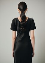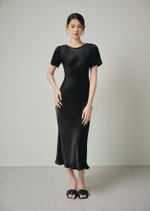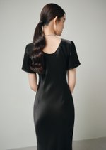 Meet Petrina, the embodiment of sophistication and elegance. This midi dress features a round neckline, scoop back detailing, and sleeves, making it ideal for seamlessly transitioning from work days to dinner dates.