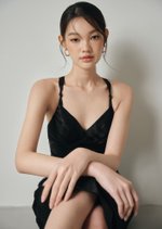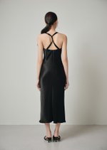 The Sonny midi dress is a stunning piece that highlights intricate twist neck detailing and is tailored with a flattering bias cut, capturing the essence of elegant sophistication.