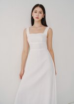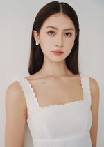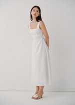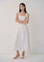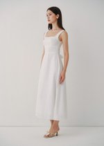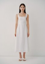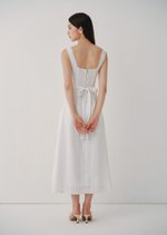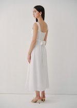 The scalloped series that you've all been waiting for. Say hello to Amandie, a midaxi dress with delicate scallop trimming that adorns the edges, adding a touch of femininity and sophistication, as well as a self-tie back detailing.