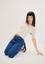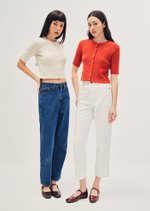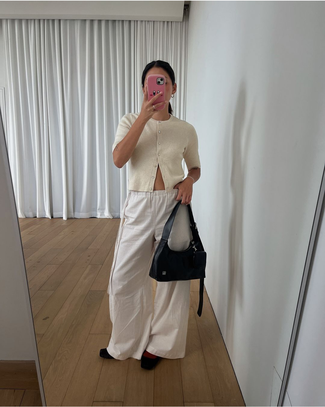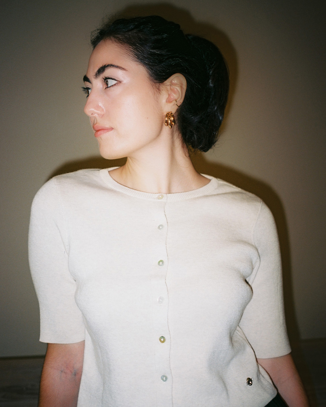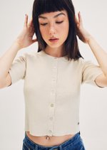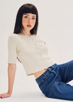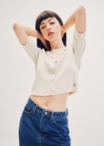 The Hiro Cardigan embodies the essence of '90s-inspired fashion, featuring short-length sleeves, a sleek slim fit, and a row of buttons adorning the center front. It's a timeless wardrobe staple suitable for all.