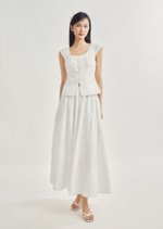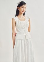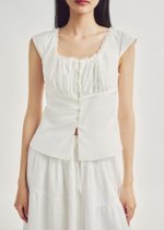 Presenting our Cleo Top, featuring refined bust gathers and stylish cap sleeves, embodying elegance in every seam.