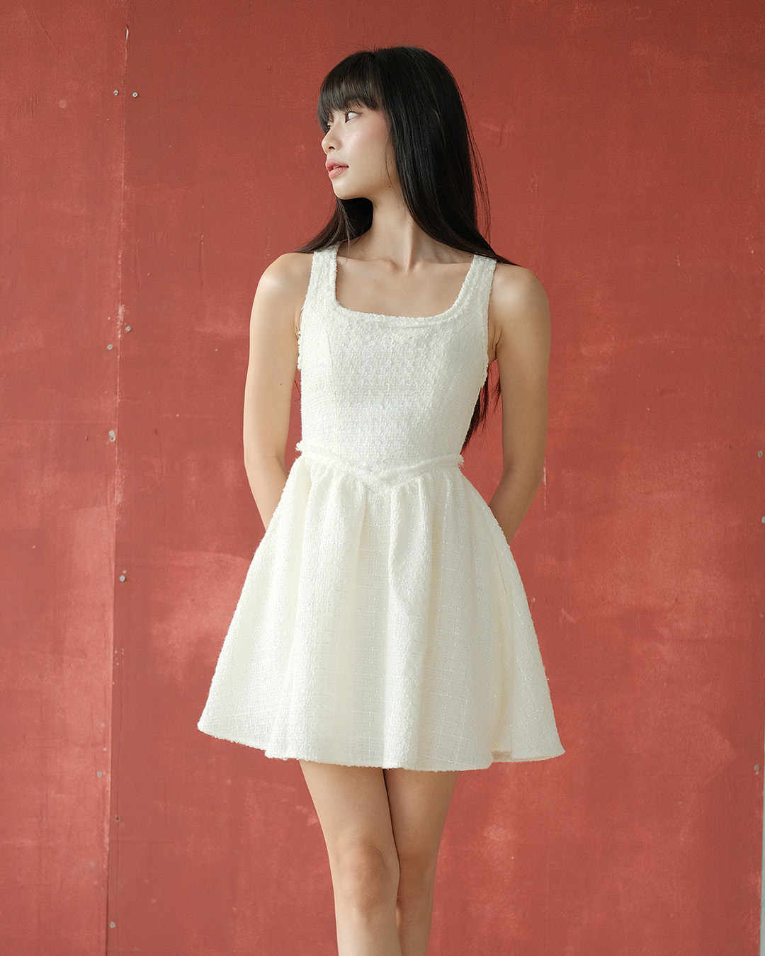 Featuring a flattering scoop neckline that accentuates the collarbones and an adorable flounce skirt, the Martha mini dress exudes timeless appeal.
