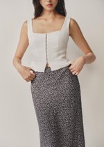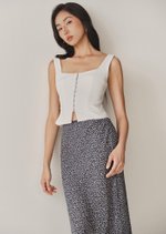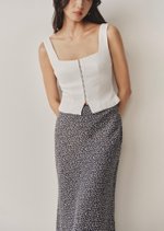 The Riley Top boasts a sophisticated square neckline and a corset-detailed, fitted bodice for a flattering silhouette. Complete with a center back zipper and fully lined for a smooth finish, this top is perfect for any stylish ensemble.