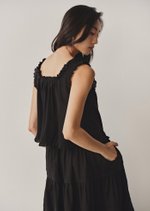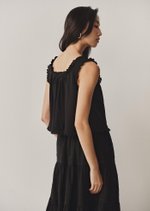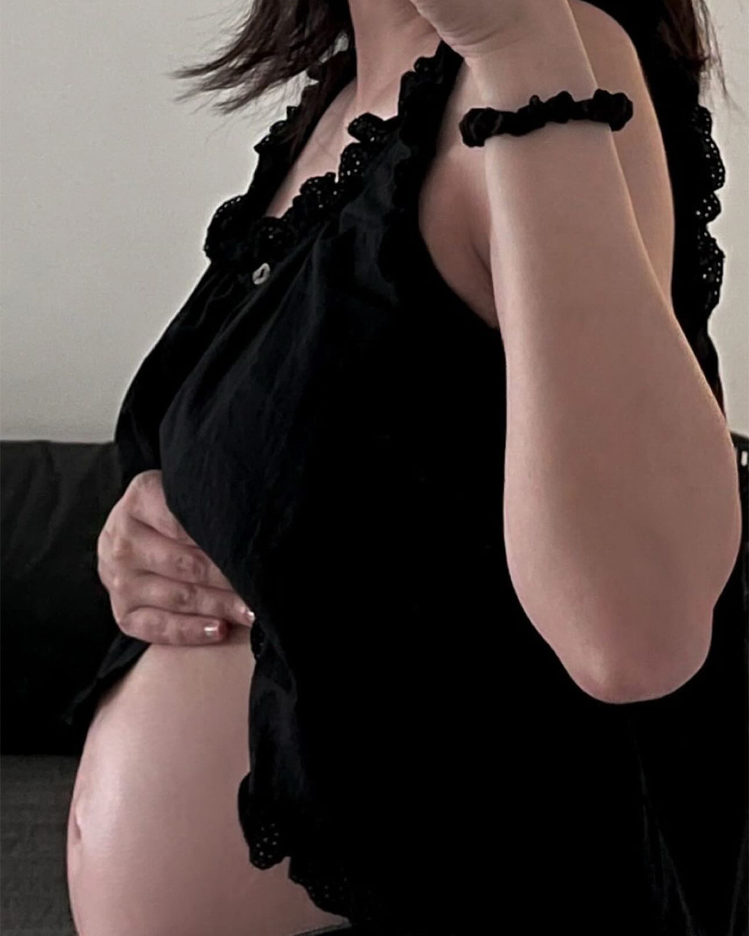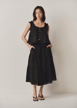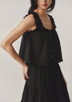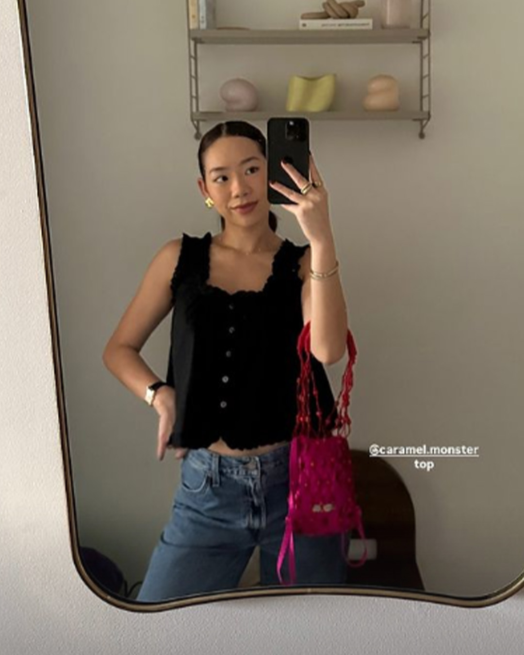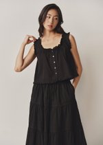 The Abigail Top features a round neckline and a relaxed fit, adorned with delicate lace trimming for a touch of elegance.