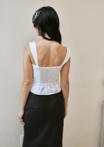 Discover the versatile elegance of the Bernice Top, featuring a corset-like bodice with detachable straps for your reference, ensuring a sleek and comfortable fit that's perfect for any occasions.