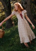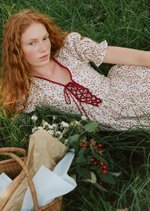 The Darlington Midi brings a cottage-core charm with its lace-up front, puff sleeves, and contrast-trimmed V neckline. Finished with a zip closure and full lining, it’s a romantic staple made for slow days and sun-drenched walks.