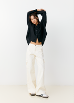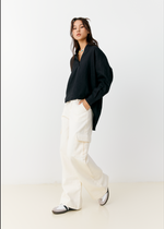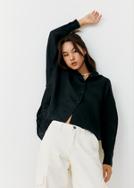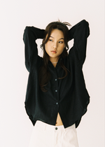 A timeless wardrobe staple. The Pepper is an oversized collar button down shirt that you can choose to dress down for casual days or dress up for formal events.