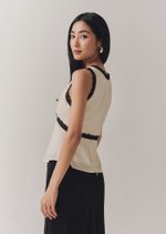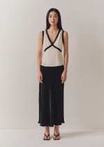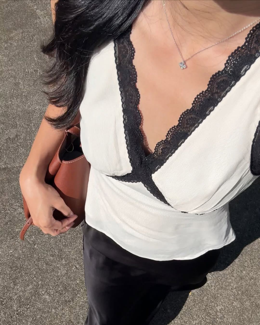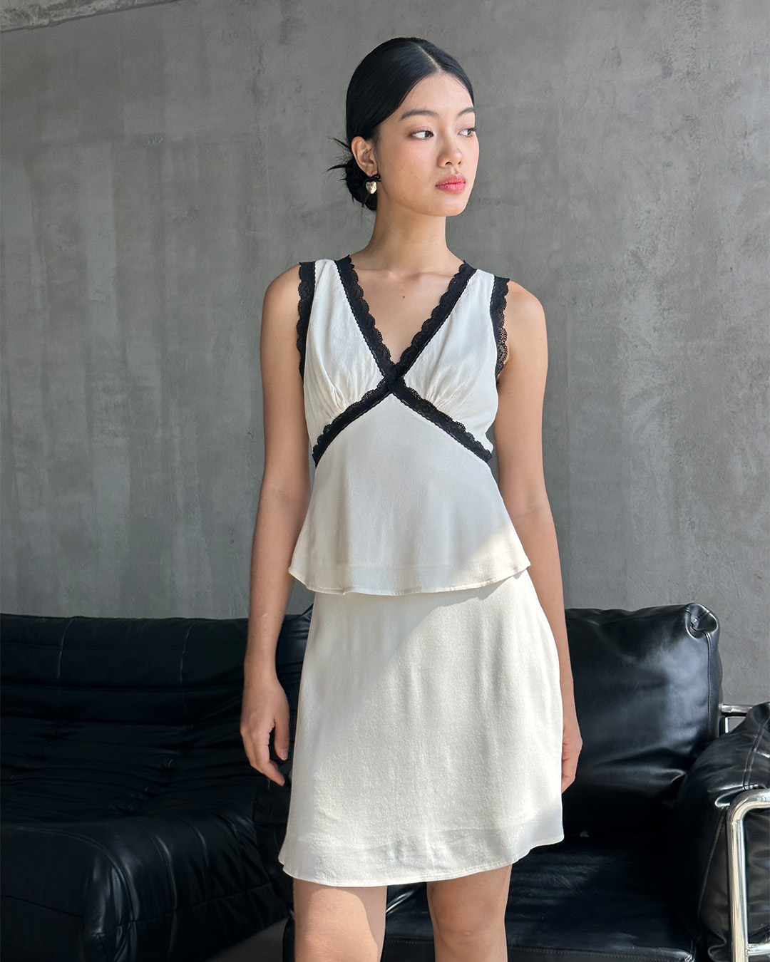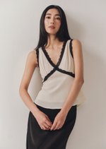 The Roan top features a v-cut neckline, accentuated with lace trimmings and invisible zipper detailing.