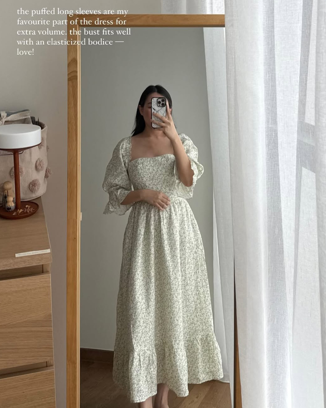 The Rochelle Midaxi Dress showcases a charming sweetheart neckline, complemented by delicate ruffle trimming and romantic puffy sleeves. With a midaxi length, a center back zipper, and a smocked panel for added comfort, this fully lined dress is perfect for any weekend dates.