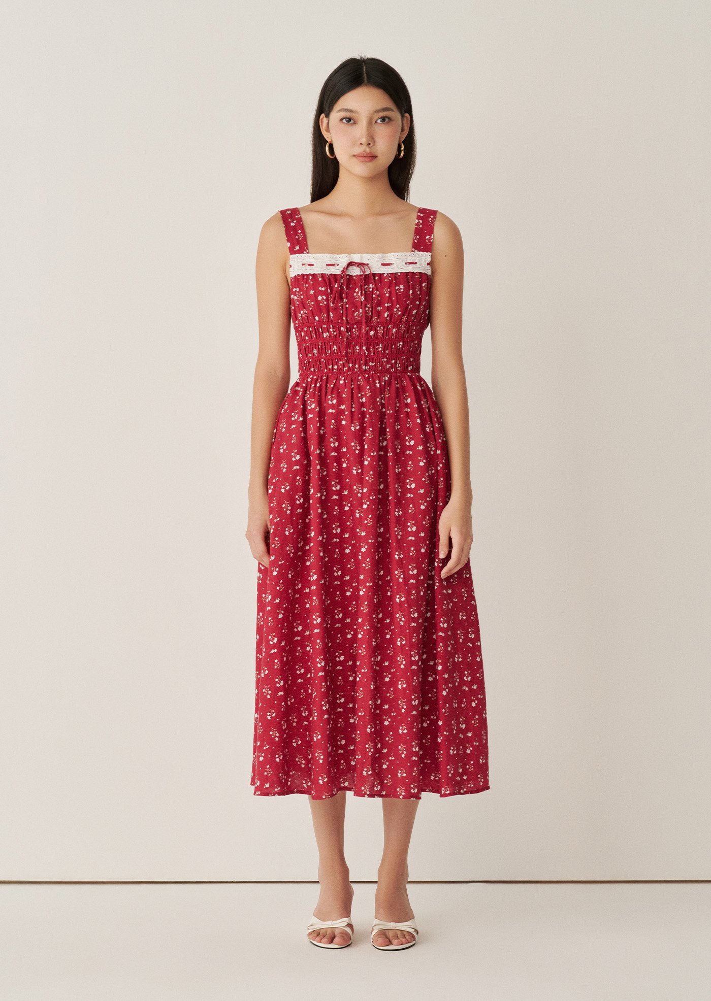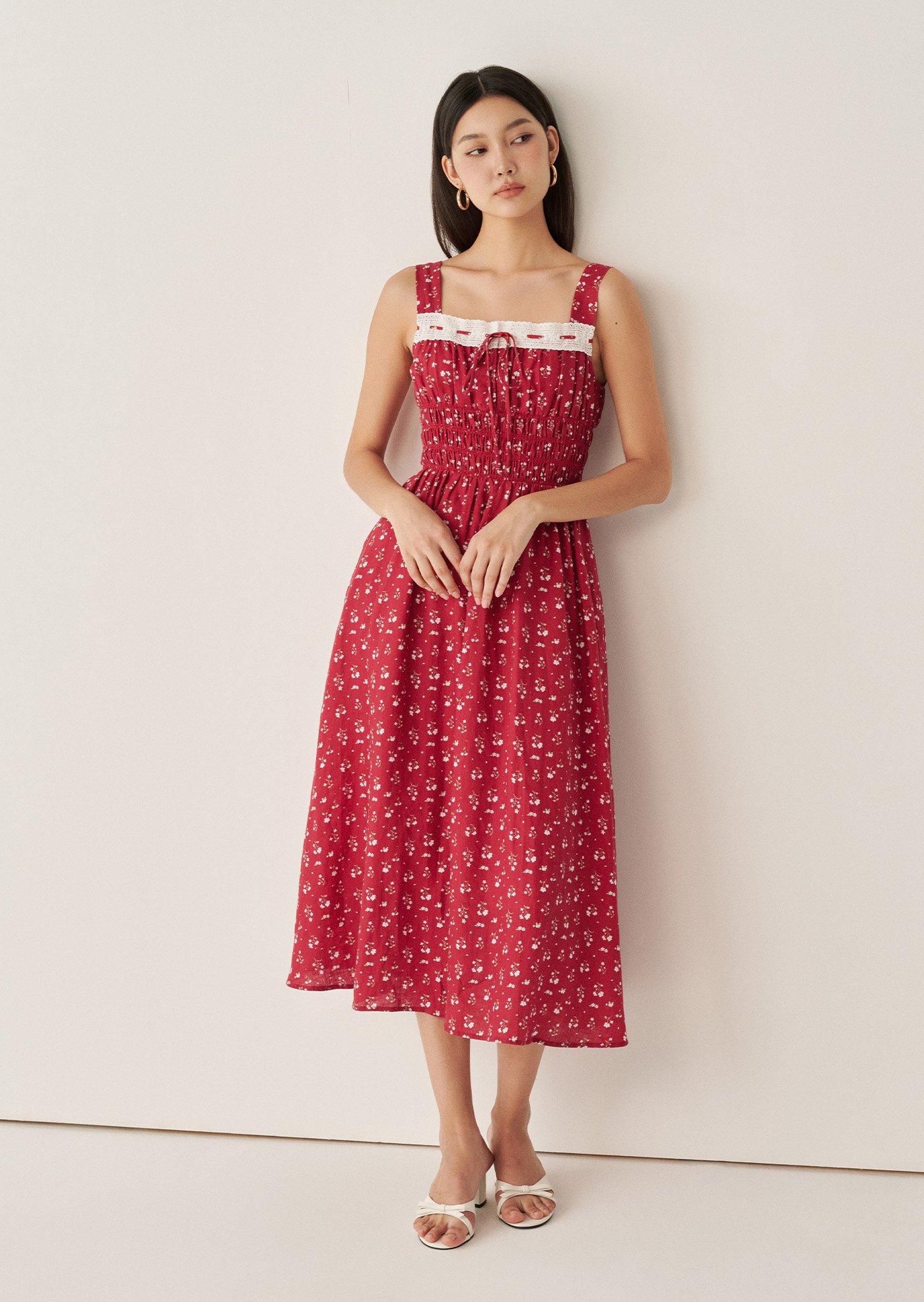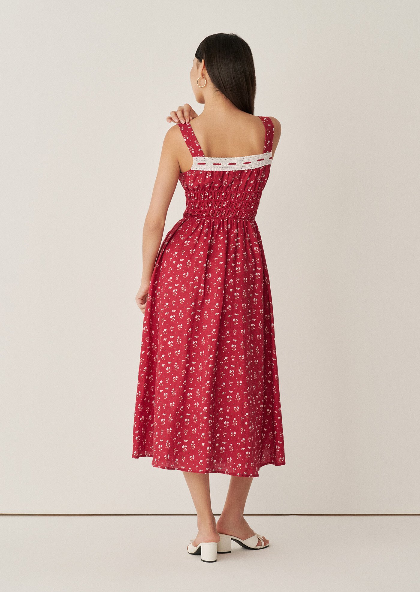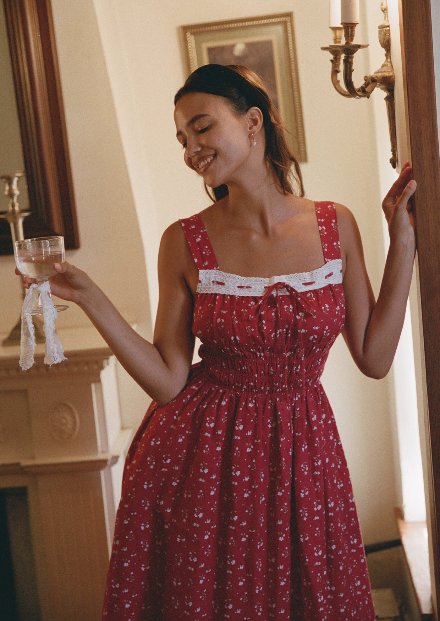 Rosmarin Midi Dress - Paperwhites in Chérie Rouge