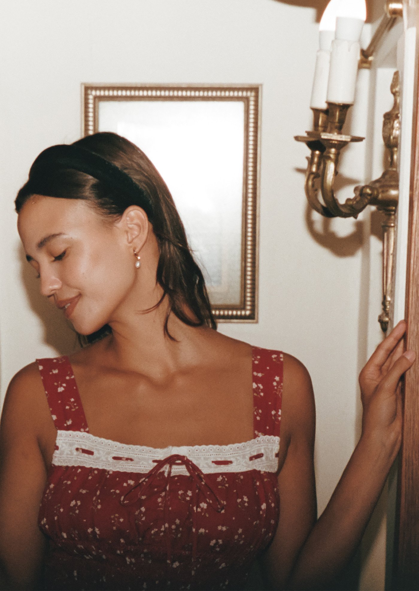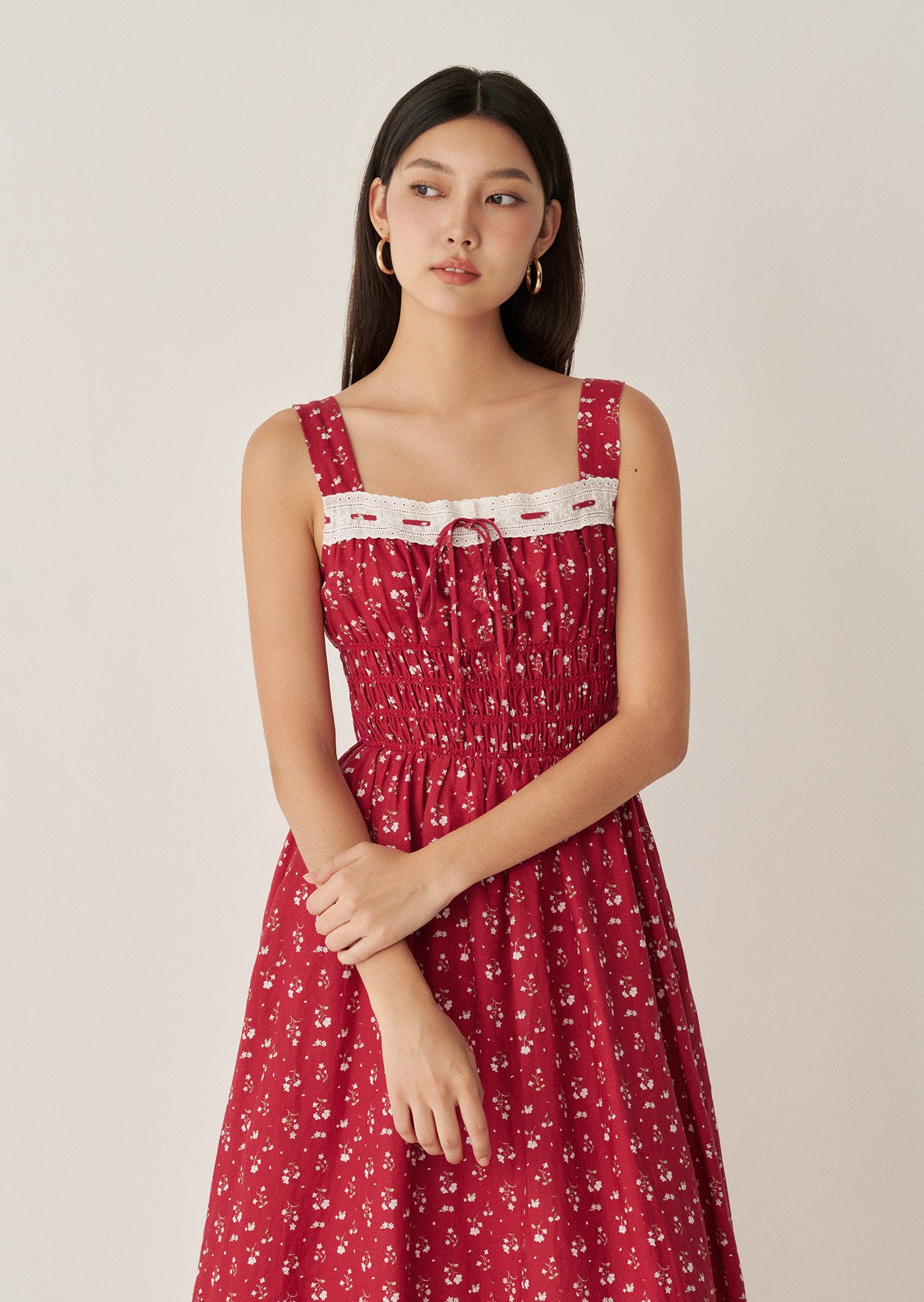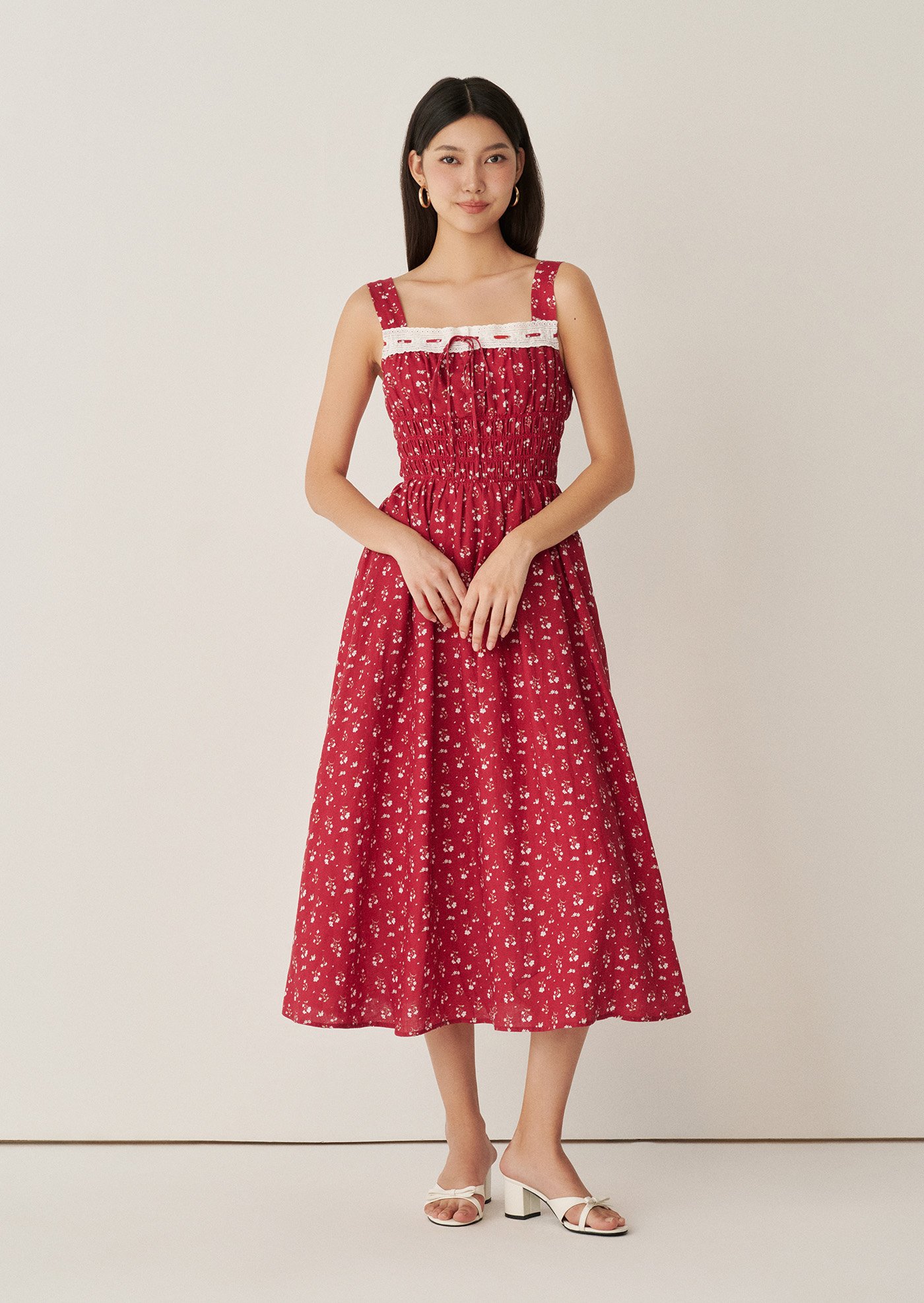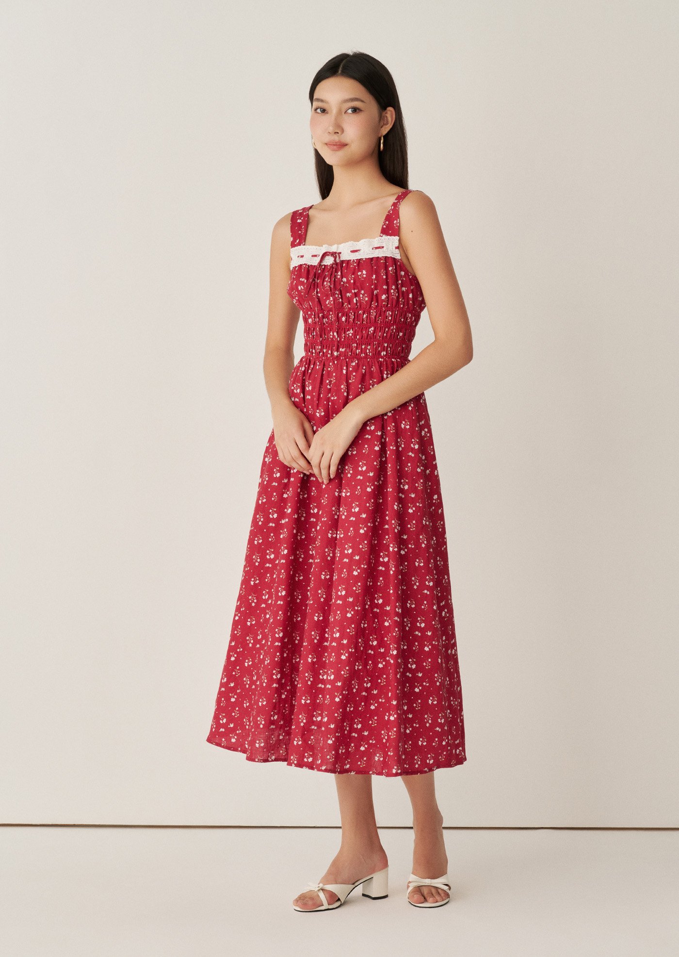 Rosmarin Midi Dress - Paperwhites in Chérie Rouge