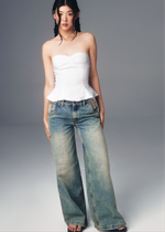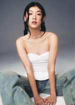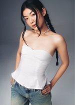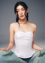 The Roz is a sweetheart neckline strapless top, accentuated with runched detailing around the bust, and finished with a ruffled hemline.