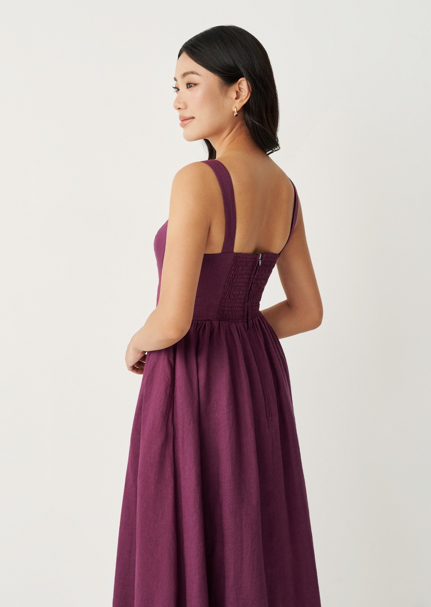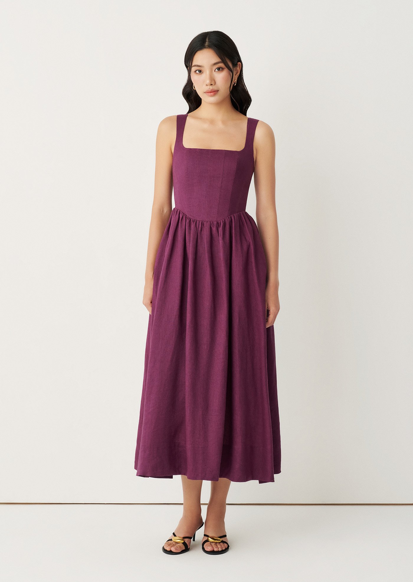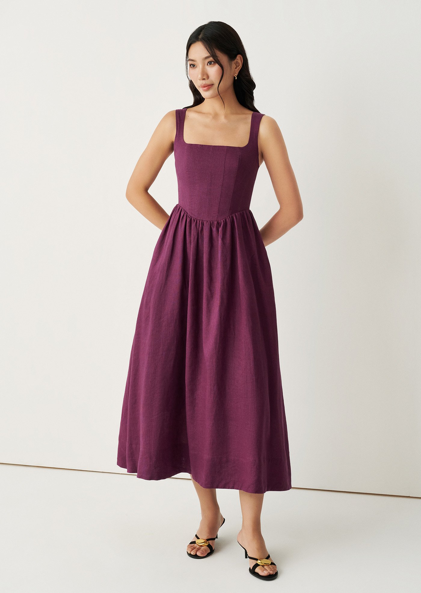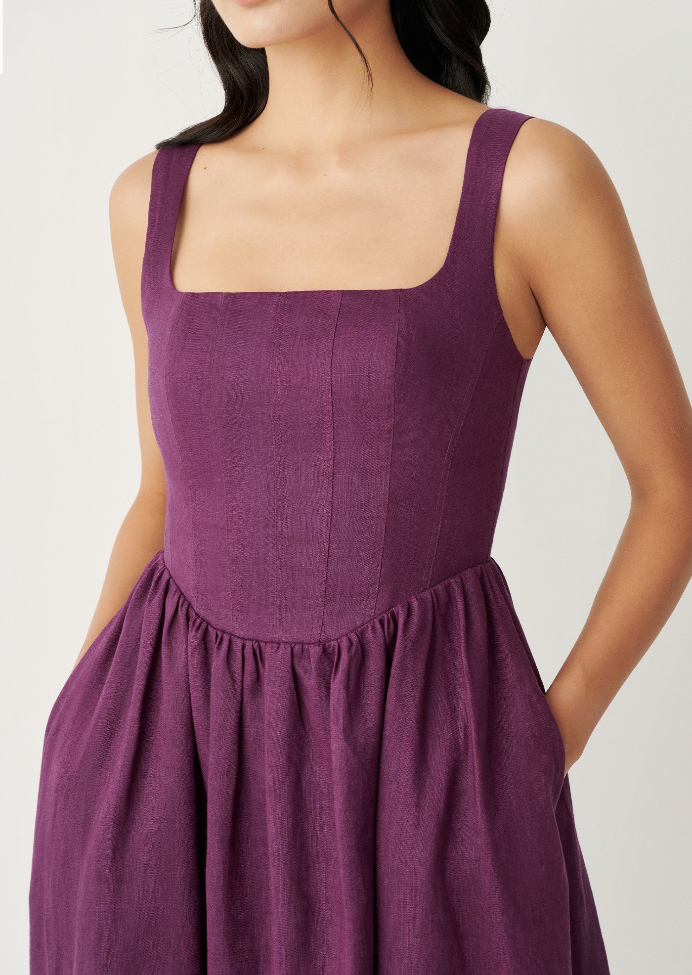 Discover the Sabrina Midaxi Dress, featuring a flattering corset-inspired bodice and handy pockets, ideal for weddings or vacation getaways.