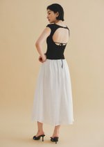 The Seine Midi Dress combines timeless elegance with comfort. Featuring a linen top, ramie bottom, and a smocked bodice, it has a straight boat neckline and back cut-outs with a hook-and-eye closure. Fully lined with side pockets for a chic, functional design.