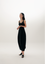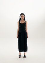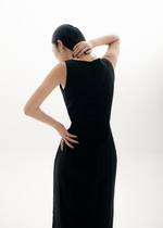 The Stanley is a sleeveless dress with a scoop neckline and back zipper.