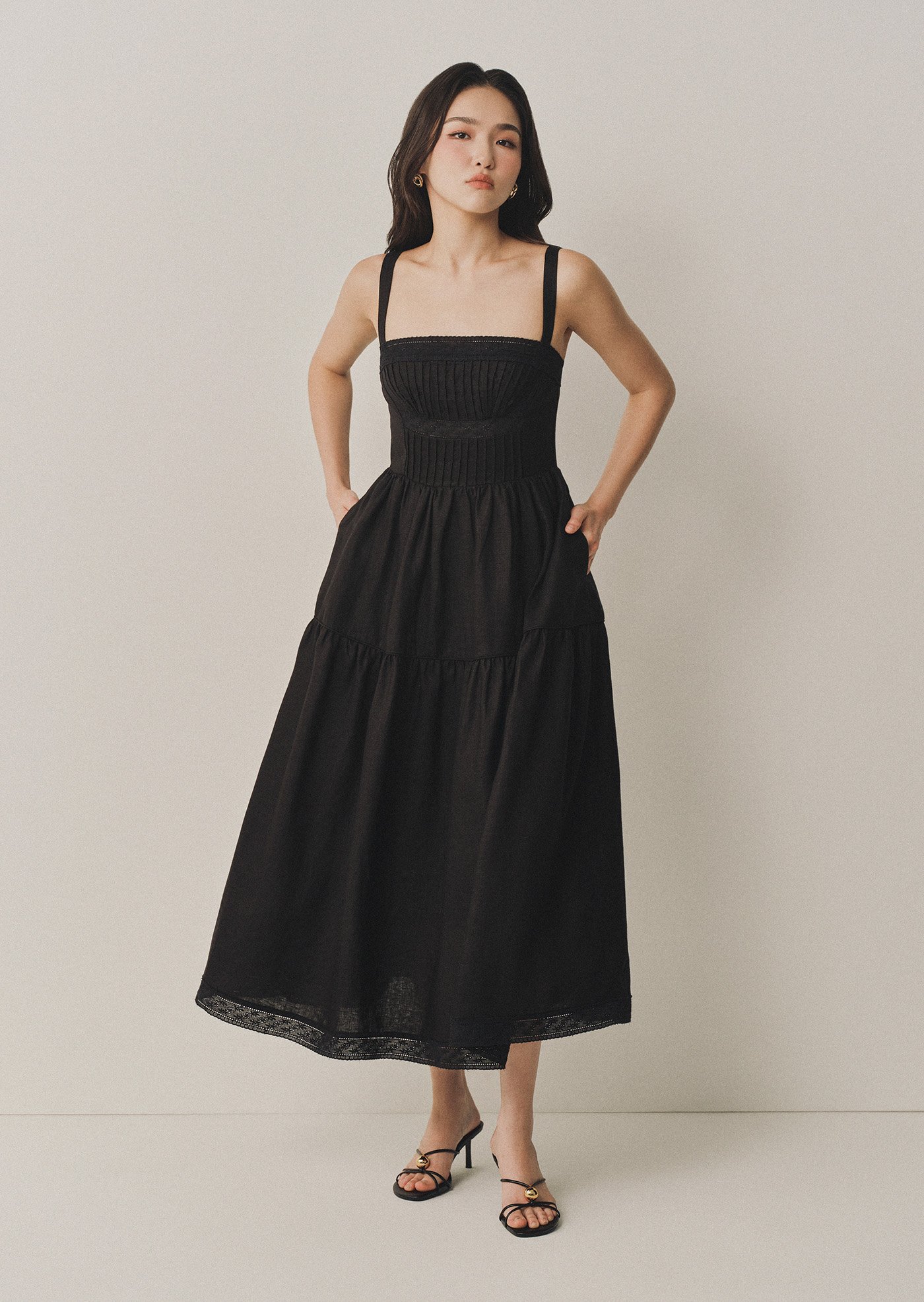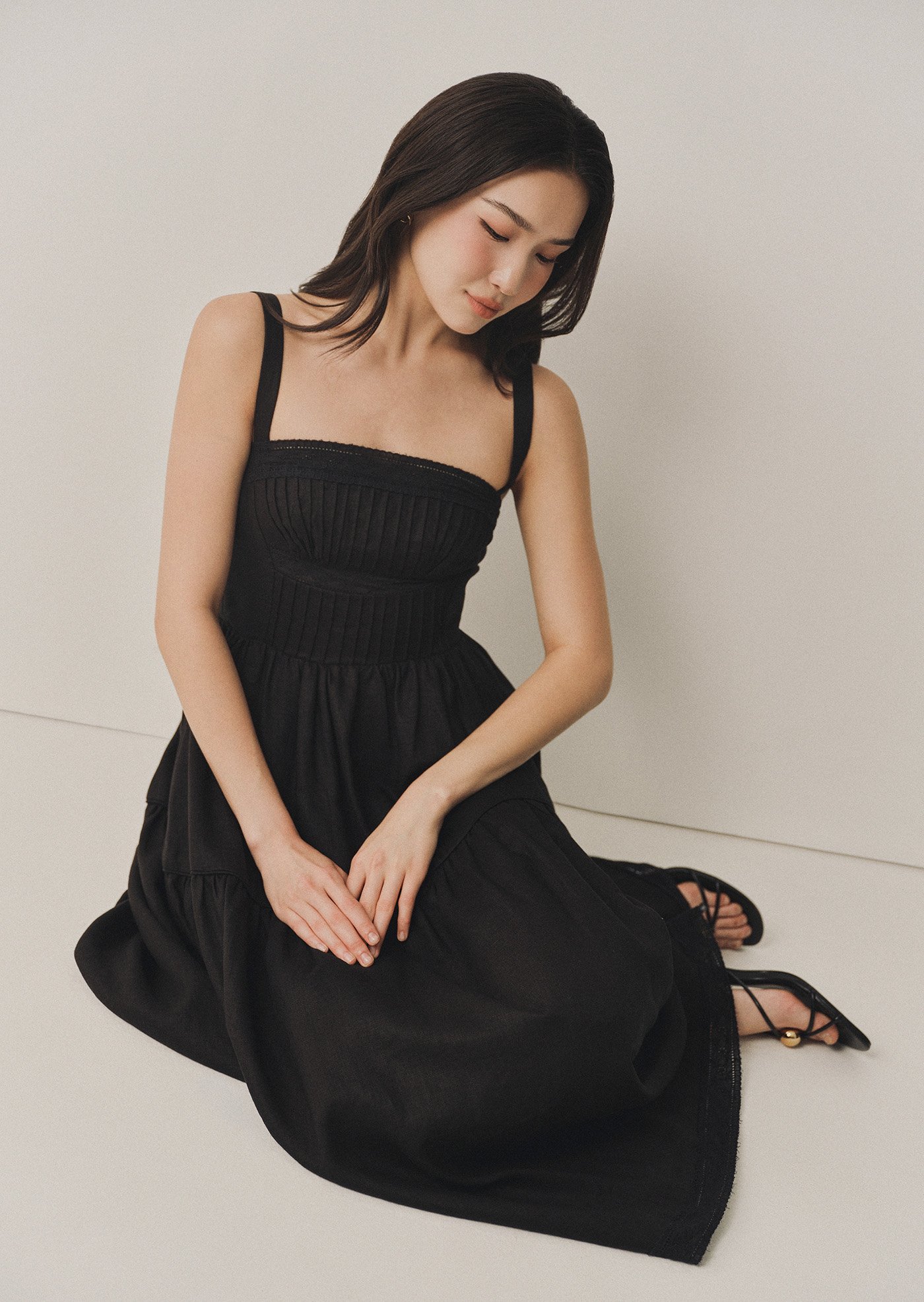 The Sybil Dress is a delicate blend of timeless charm and effortless grace, with its pintucked bodice, lace overlays, and flattering fit-and-flare silhouette. Thoughtfully designed with a smocked back, sideseam pockets, and a dreamy midaxi length, it’s a piece you’ll reach for time and time again.