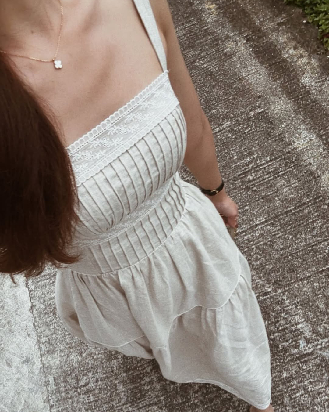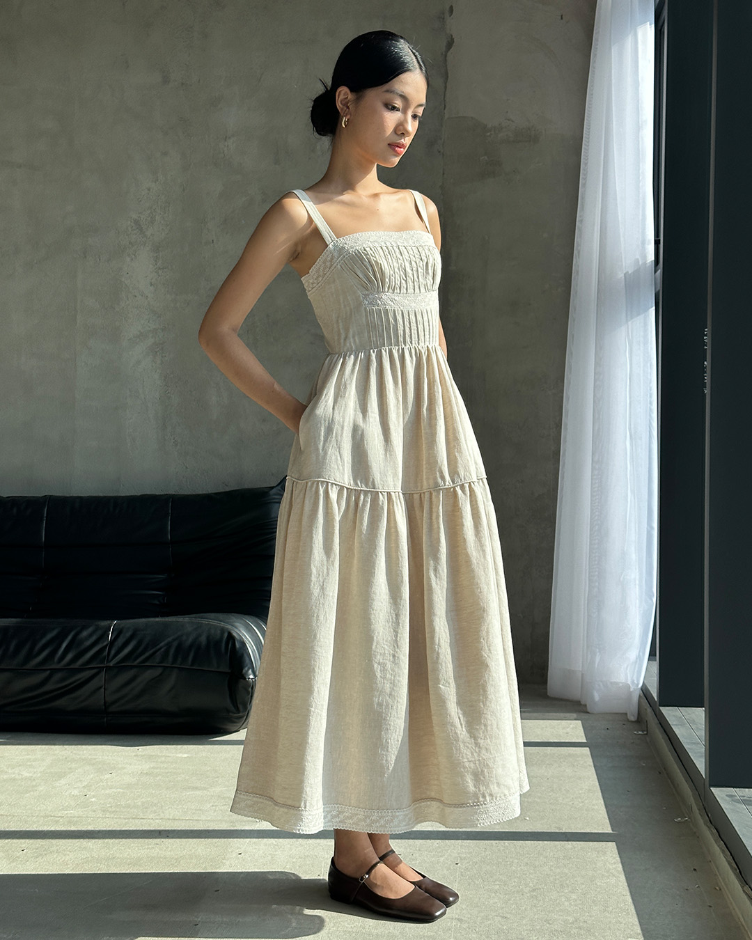 The Sybil Dress is a delicate blend of timeless charm and effortless grace, with its pintucked bodice, lace overlays, and flattering fit-and-flare silhouette. Thoughtfully designed with a smocked back, sideseam pockets, and a dreamy midaxi length, it’s a piece you’ll reach for time and time again.
