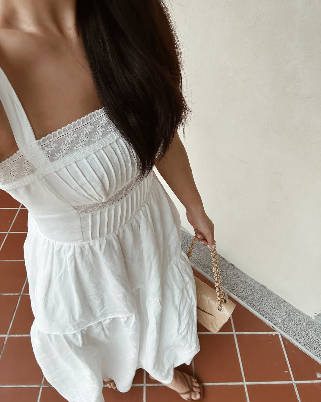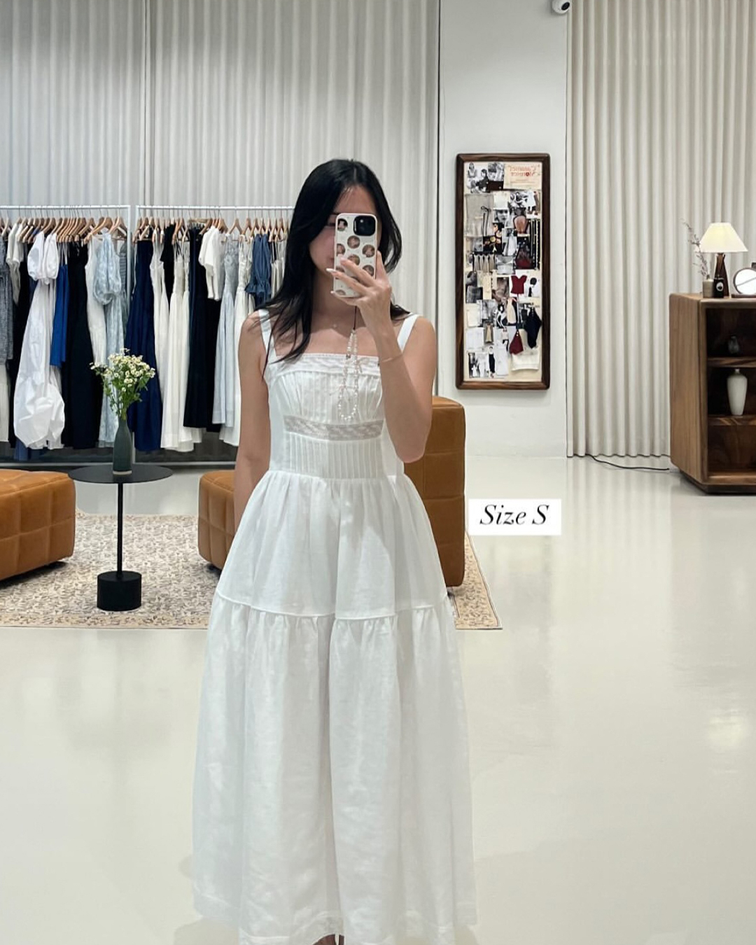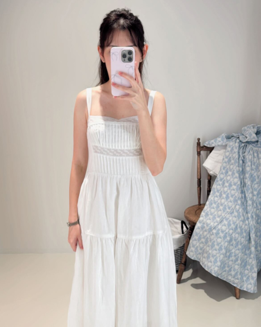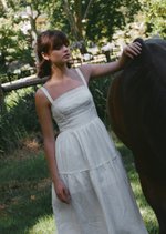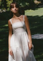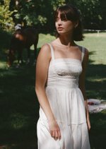 The Sybil dress is a delicate blend of timeless charm and effortless grace, with its pintucked bodice, lace overlays, and flattering fit-and-flare silhouette. Thoughtfully designed with a smocked back, sideseam pockets, and a dreamy midaxi length, it’s a piece you’ll reach for time and time again.