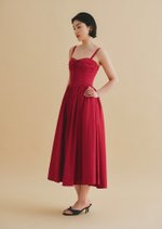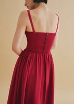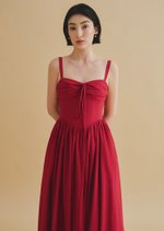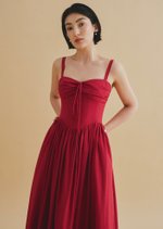 Introducing the Tribeca Midi Dress—a chic design featuring a sweetheart neckline, corset-inspired bodice with elegant detailing, adjustable straps, and handy side pockets. The midaxi length and refined back finish complete its effortlessly stylish look.