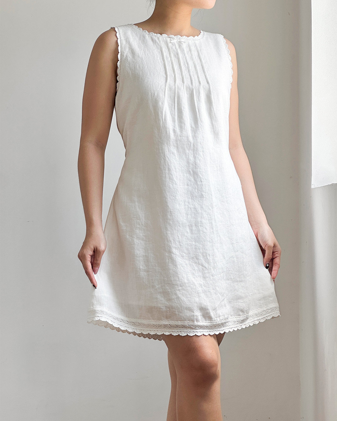 An easy, throw-on mini made for slow mornings and sunlit afternoons. Vervain features a relaxed silhouette with delicate pintuck detailing and a gentle A-line shape that feels light, breathable, and effortless on the body.