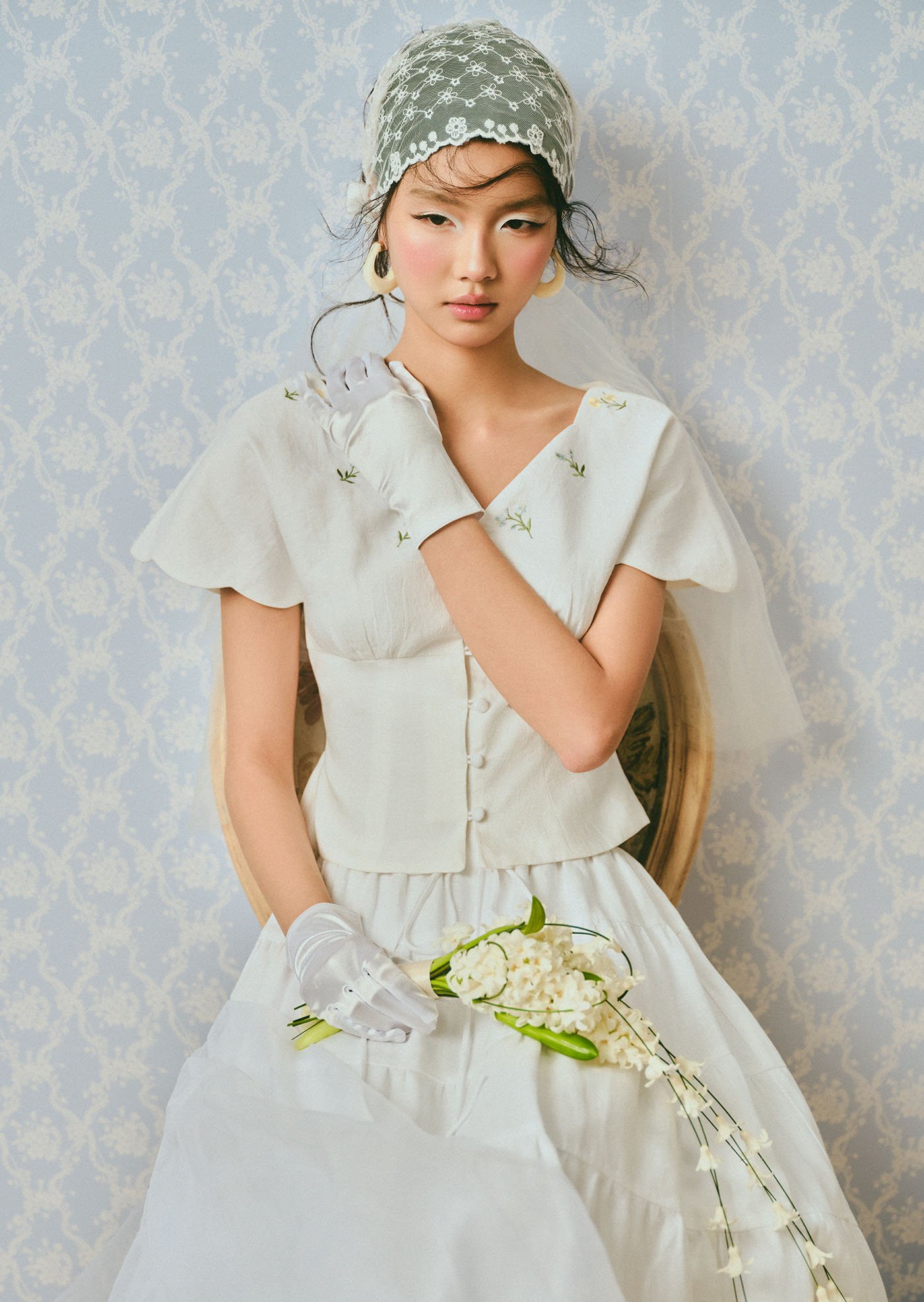 -Delicate floral embroidery on the neckline