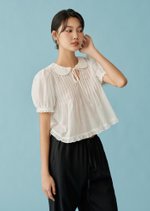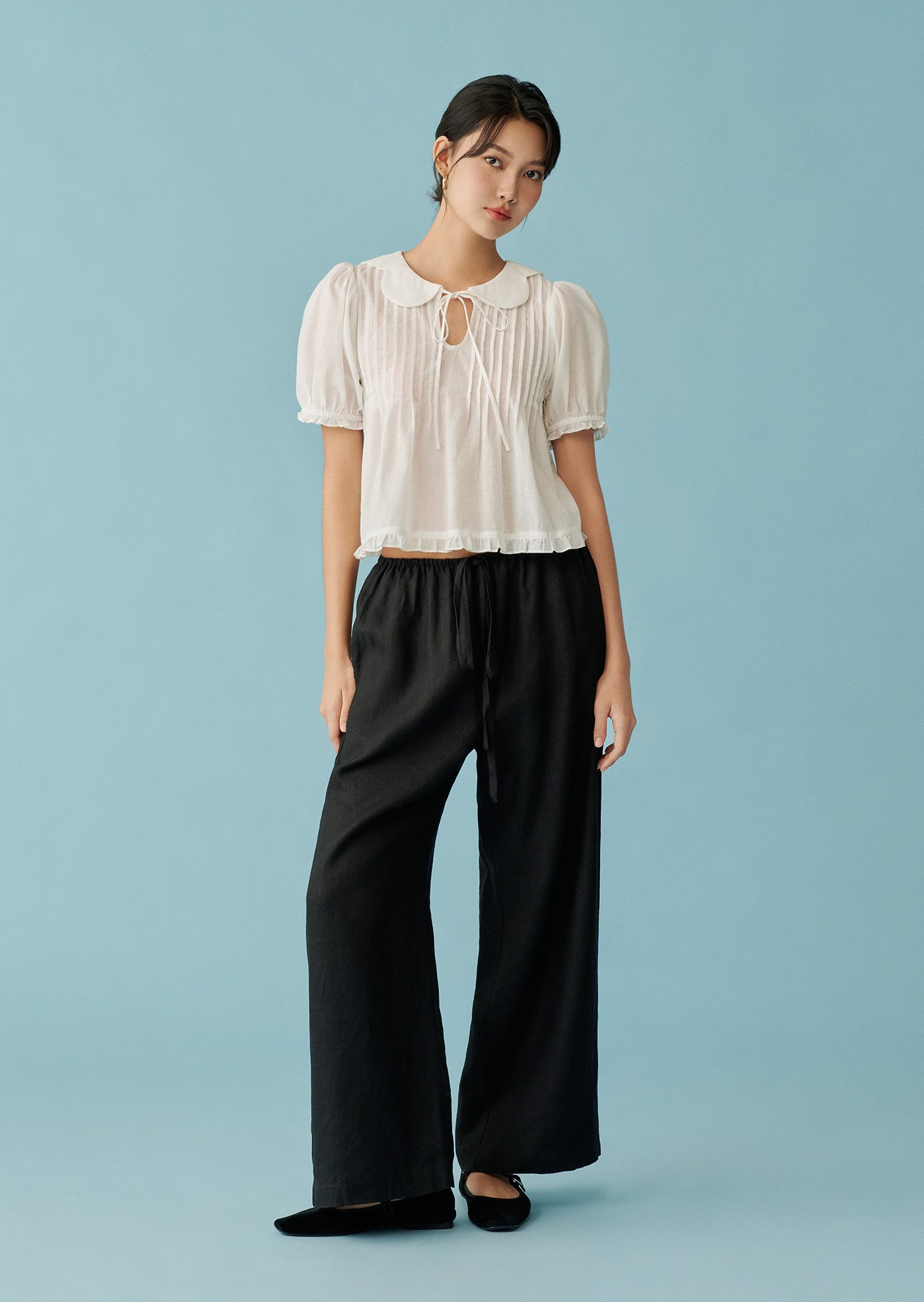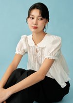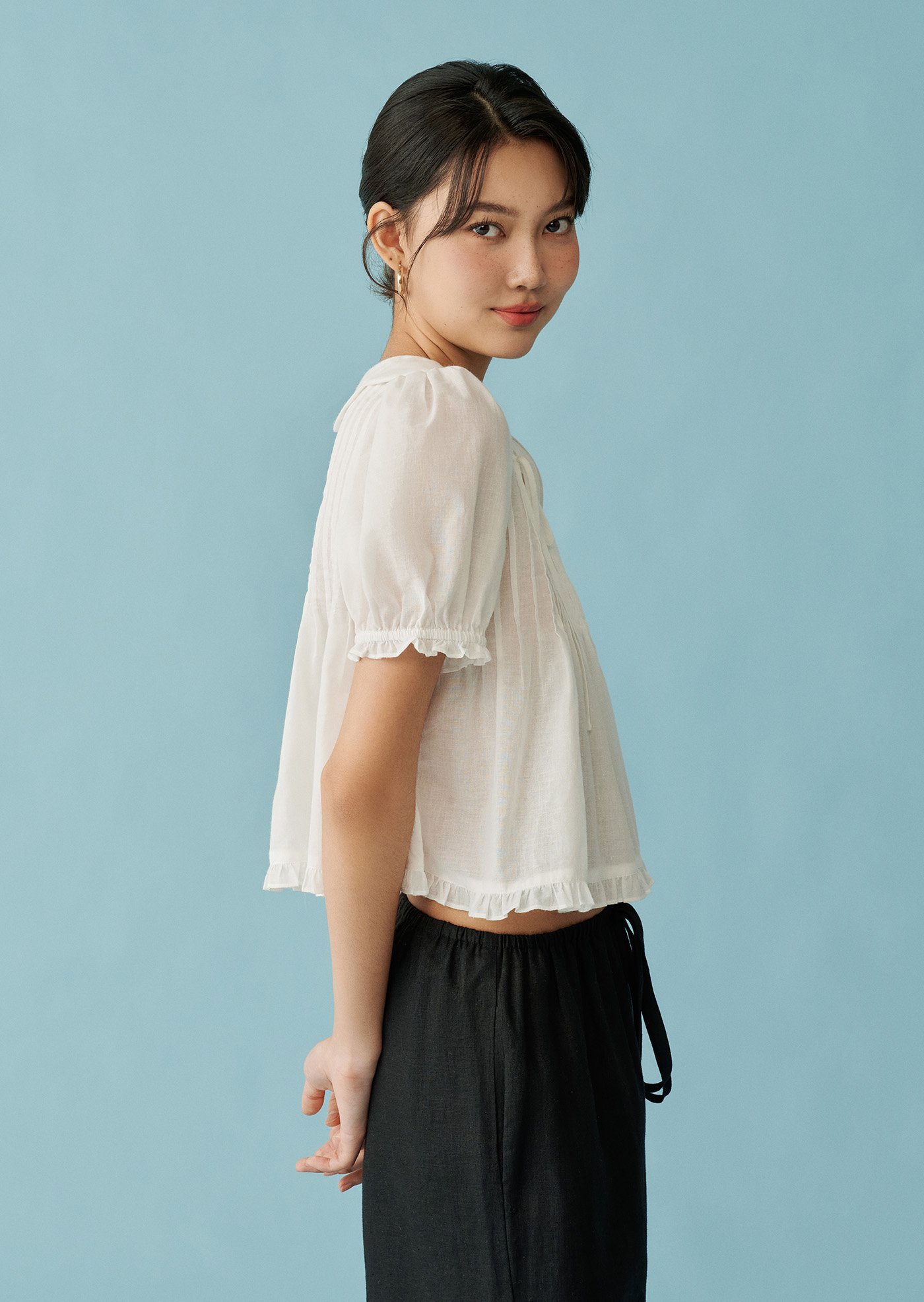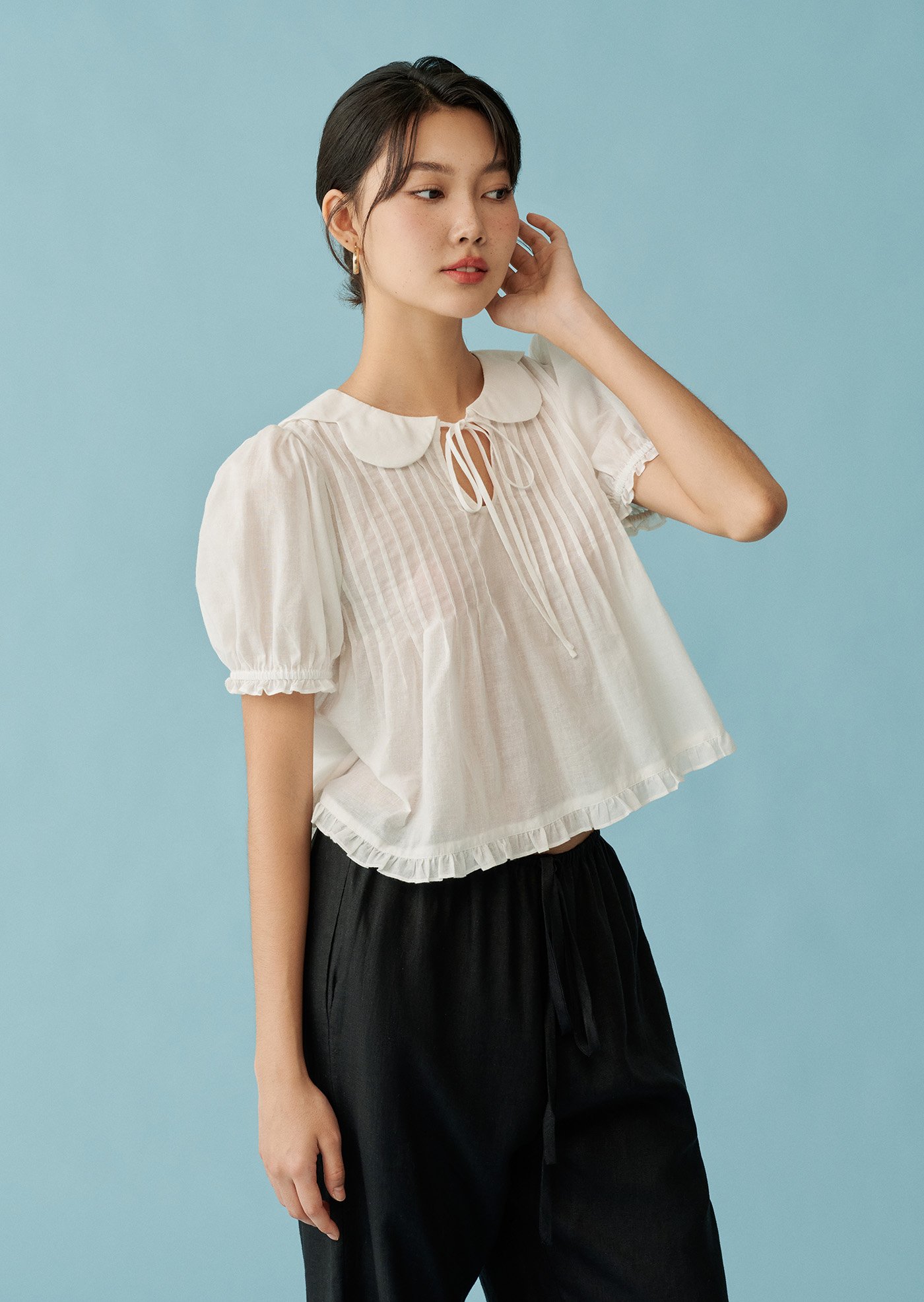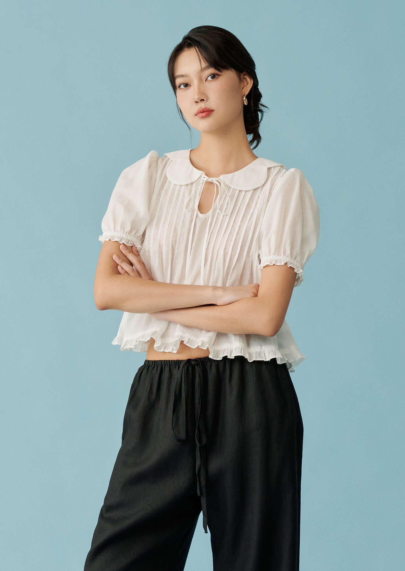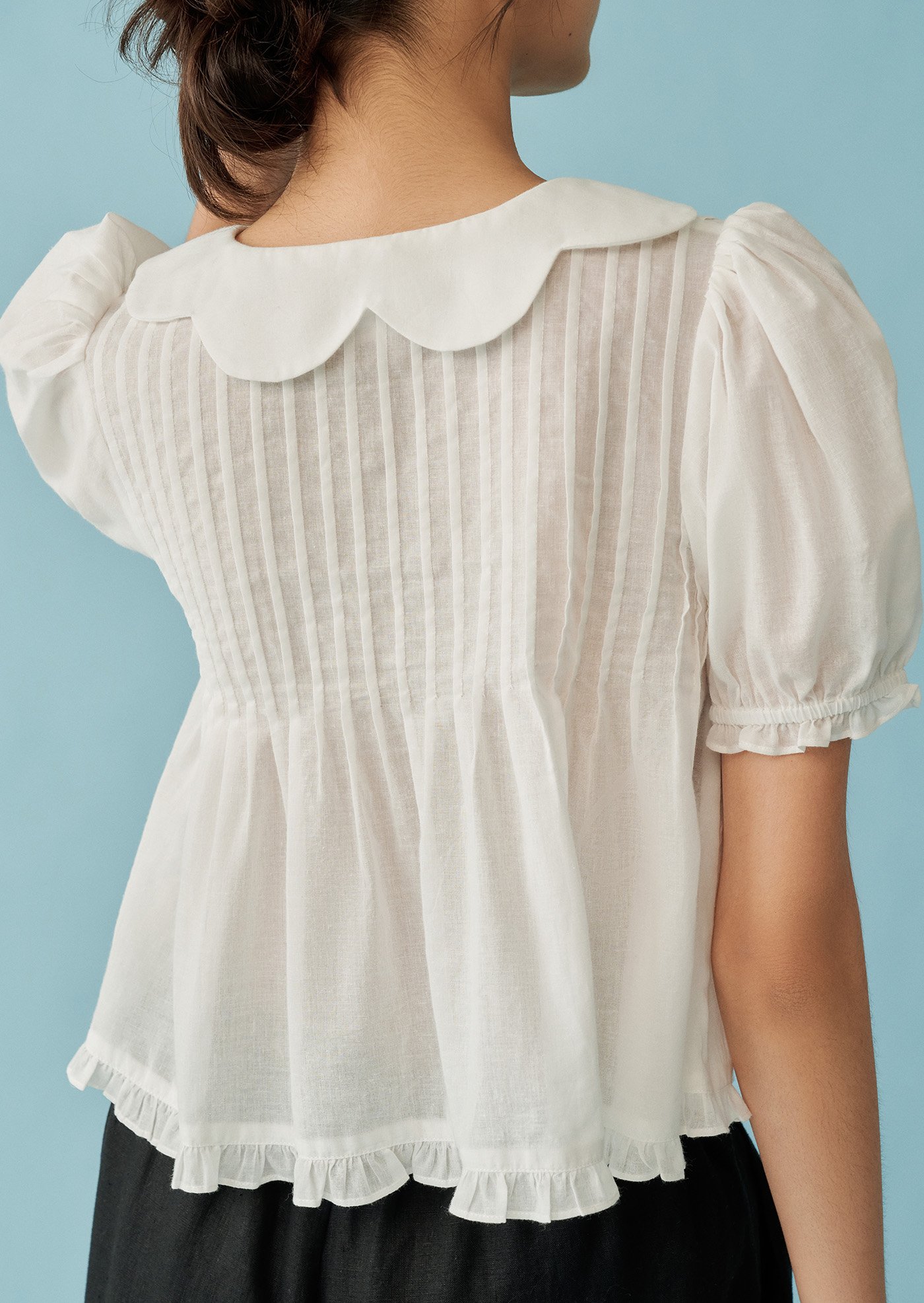 White Clover is a light, romantic blouse designed for quiet, everyday moments. Featuring soft pintuck detailing and a gentle Peter Pan collar, it drapes effortlessly with a breezy, relaxed fit—easy to wear, easy to love.