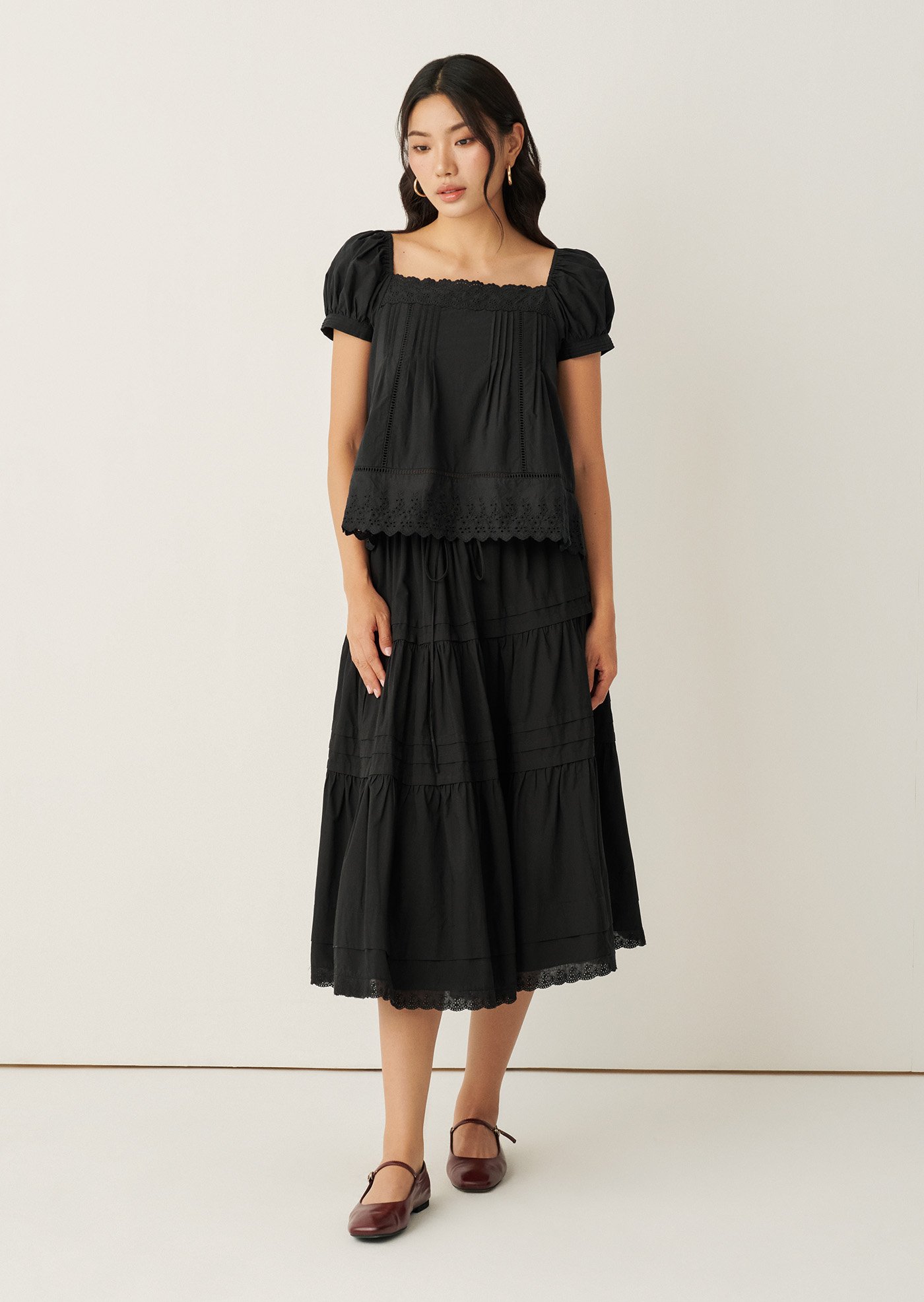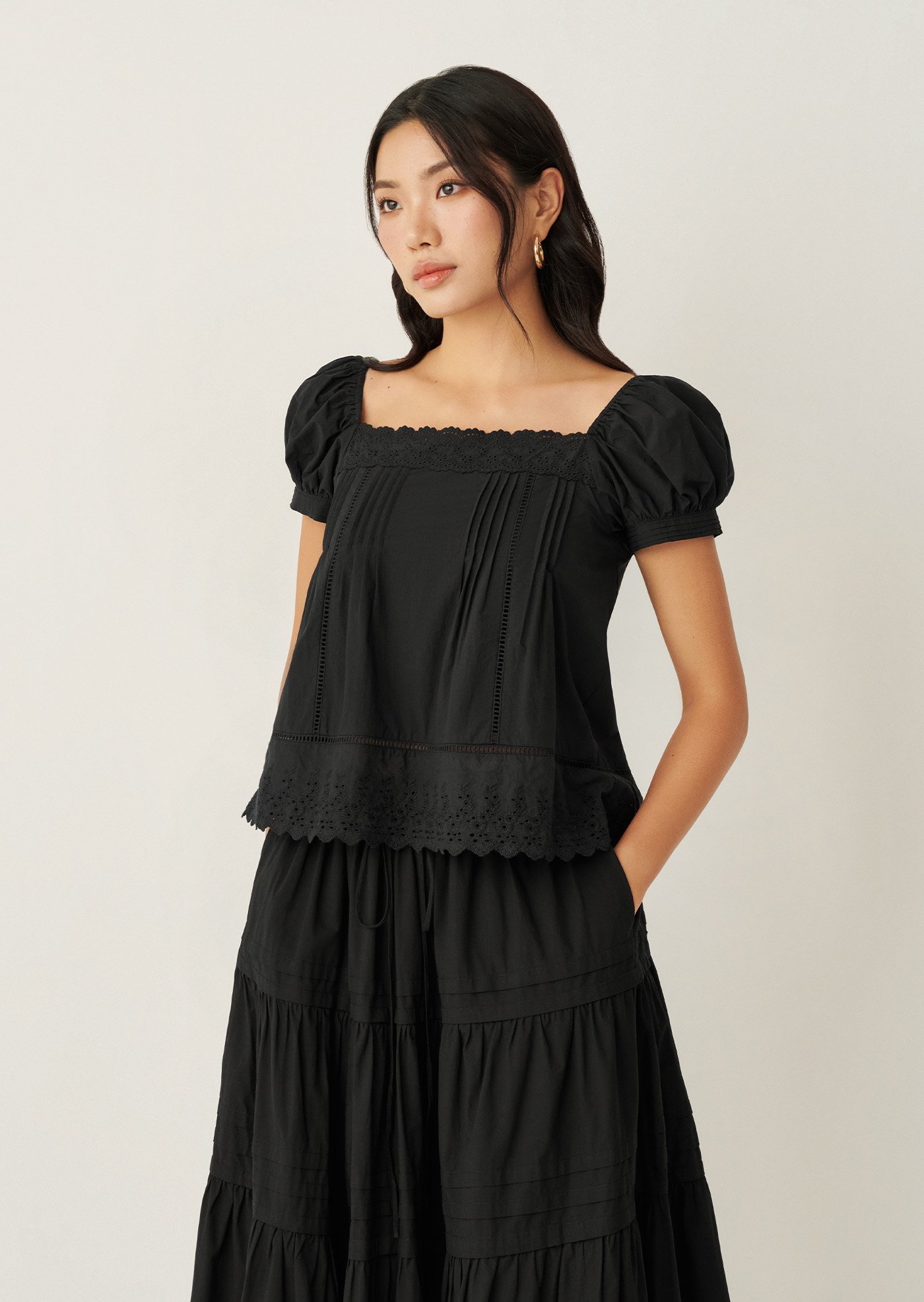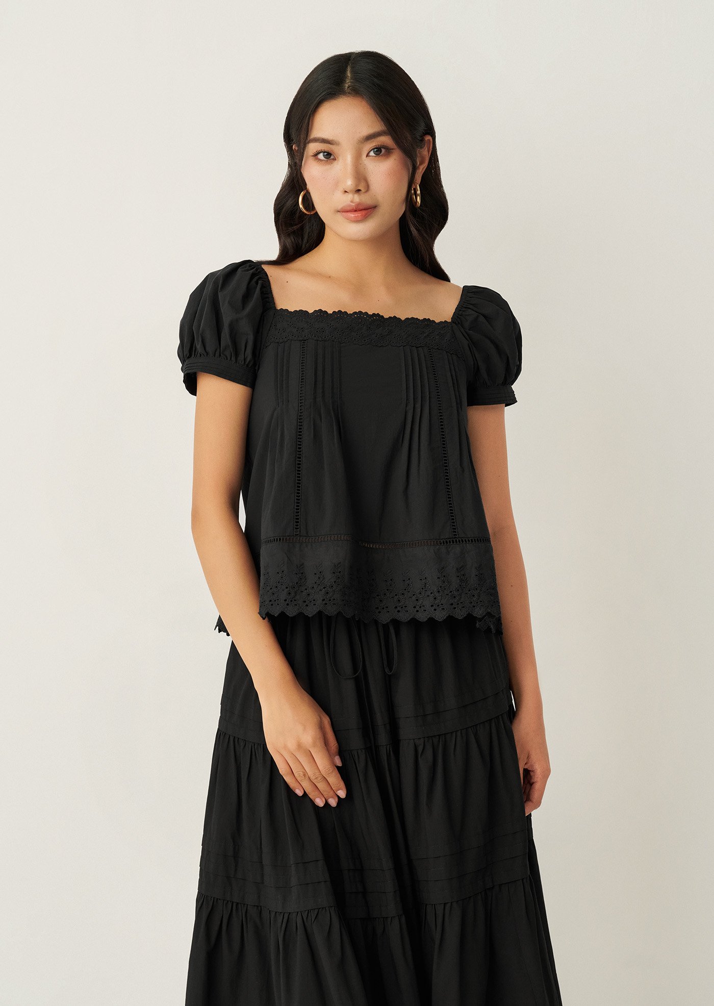 The Willis Top features delicate pintucks, lace accents, and a softly structured silhouette that feels feminine without trying too hard. An easy everyday piece that pairs beautifully with skirts or denim — made for warm days and slow moments.