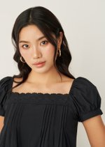 -Square neckline with delicate lace trim