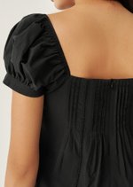 -Short puff sleeves with gentle gathers